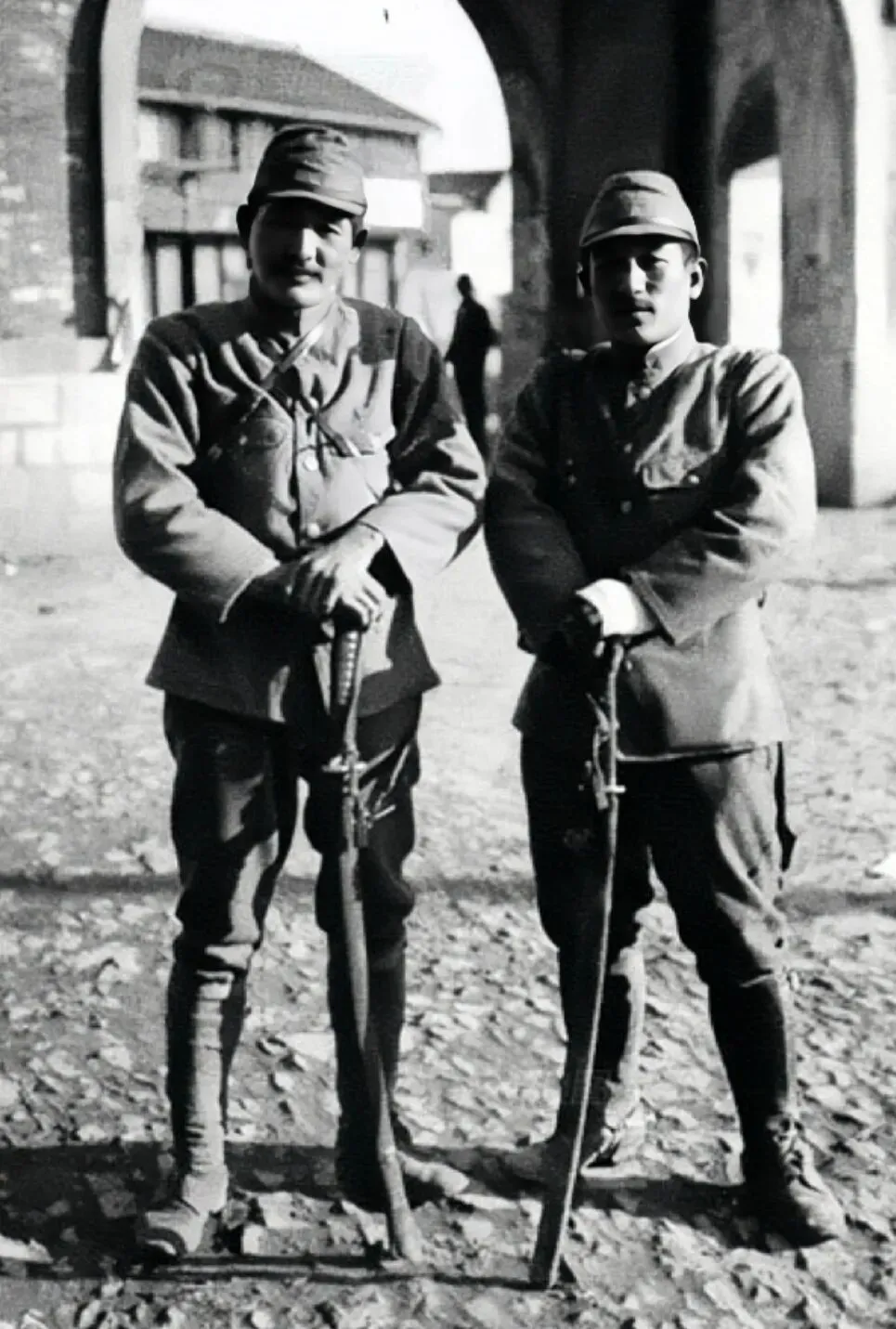 这个照片的原形是日军南京大屠杀中两个日酋的合影: