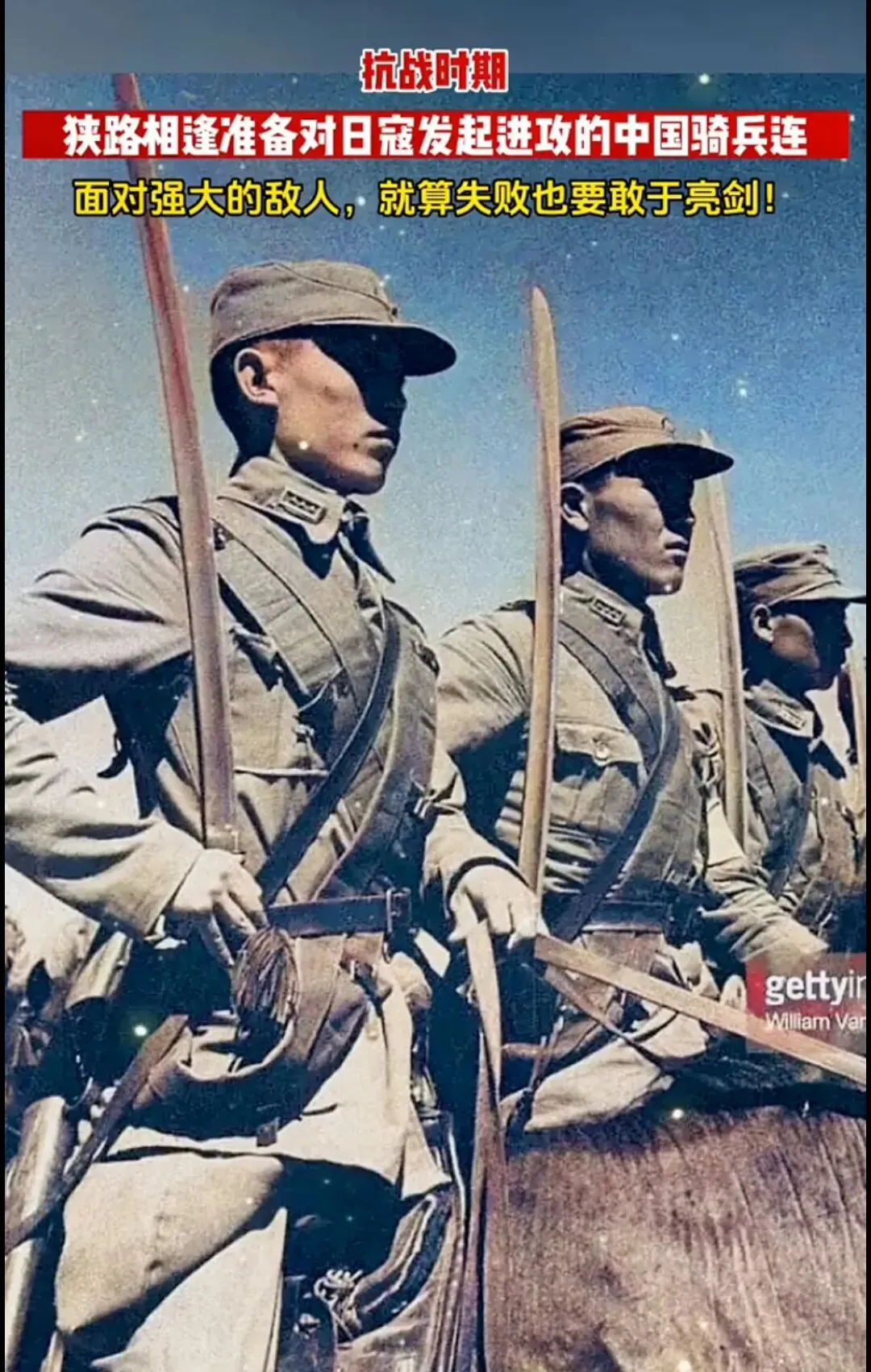 再看这张图,是身穿50军服(故意遮住帽徽和肩章和领章)的中国人民解放军骑兵,手里却拿着日军二战期间沾满中国人鲜血的陆军军刀(95士官刀或98军刀样式)。按照中国人民解放军军礼仪规定,骑兵官兵在地面腰挎骑兵刀,而非日本鬼子的拄刀姿势!这个动机和性质不是一般的恶劣!