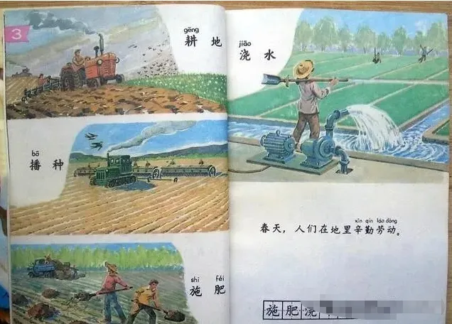 你看这篇《春天来了》的课文,是配着一幅很美的插图的。那桃花是粉的,梨花是白的,杏花是红的,整个画面是充满了春天的气息的。我记得那时候,我们是会把这些课文背得滚瓜烂熟的,是能想象出那美丽的画面的,