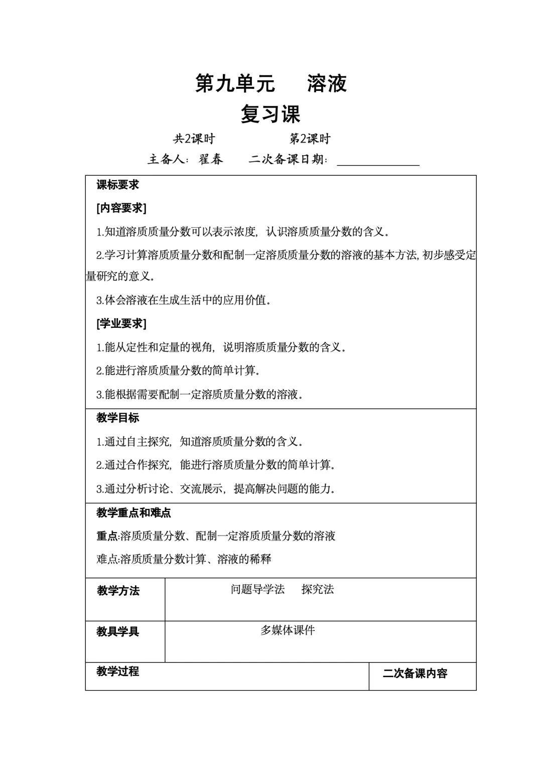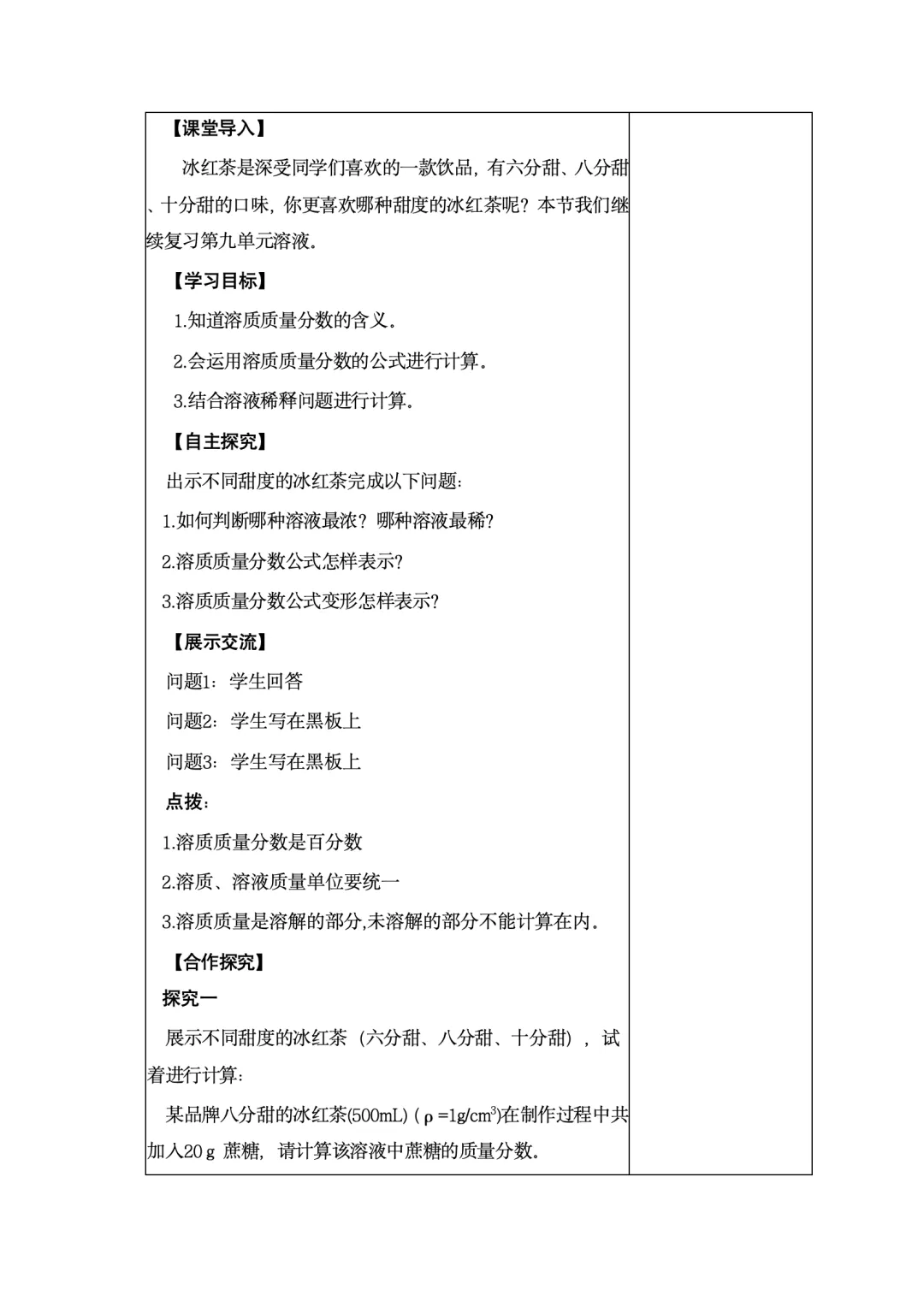 >初中化学新教材教学设计———第九单元复习课第2课时