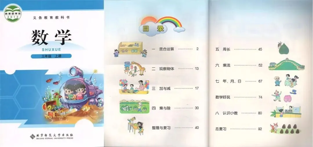 小学数学 | 小学数学(2012)教材目录(苏教版、北师大版、人教版)