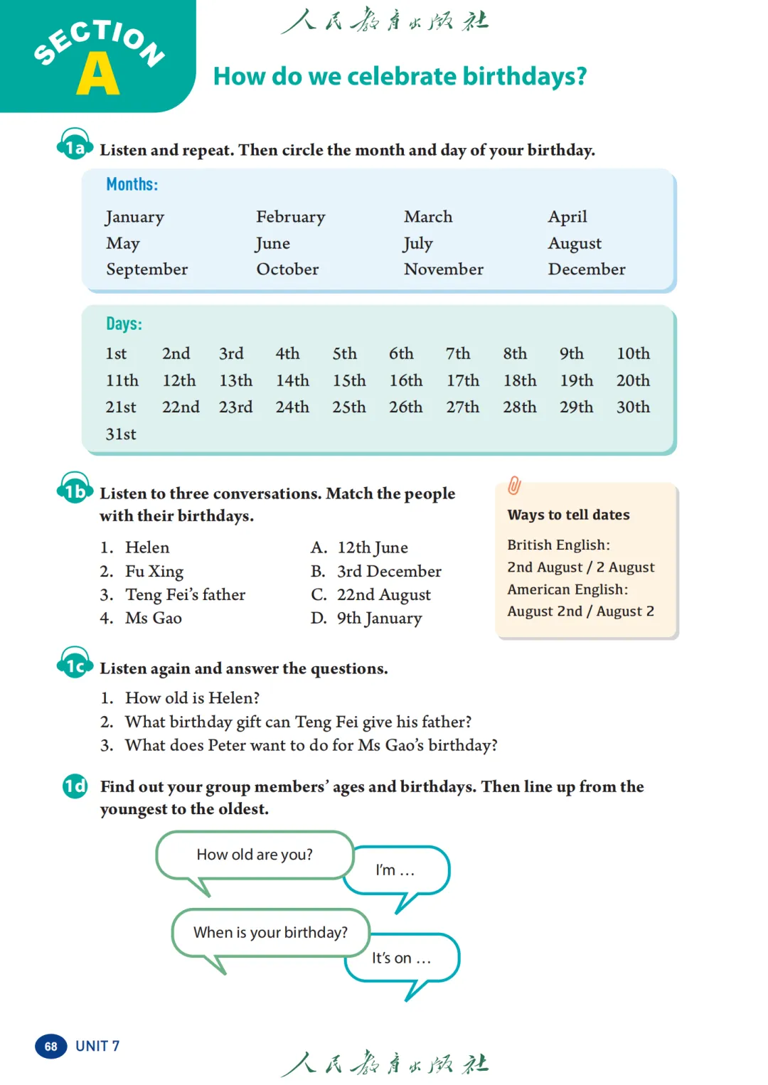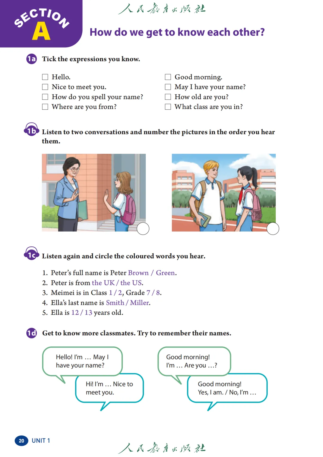 新教材人教初中新目标七年级上册英语电子课本(2025版)