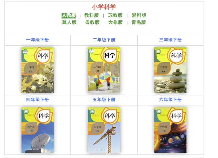 【小学课本】26年新版人教版(部编版)小学全年级科学电子课本教材(高清PDF,可下载打印)
