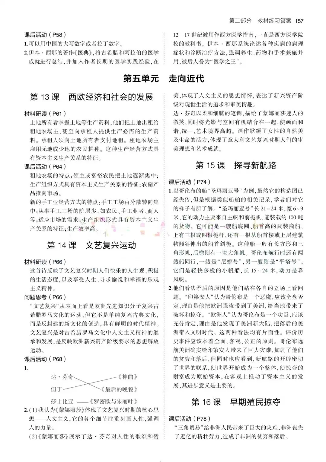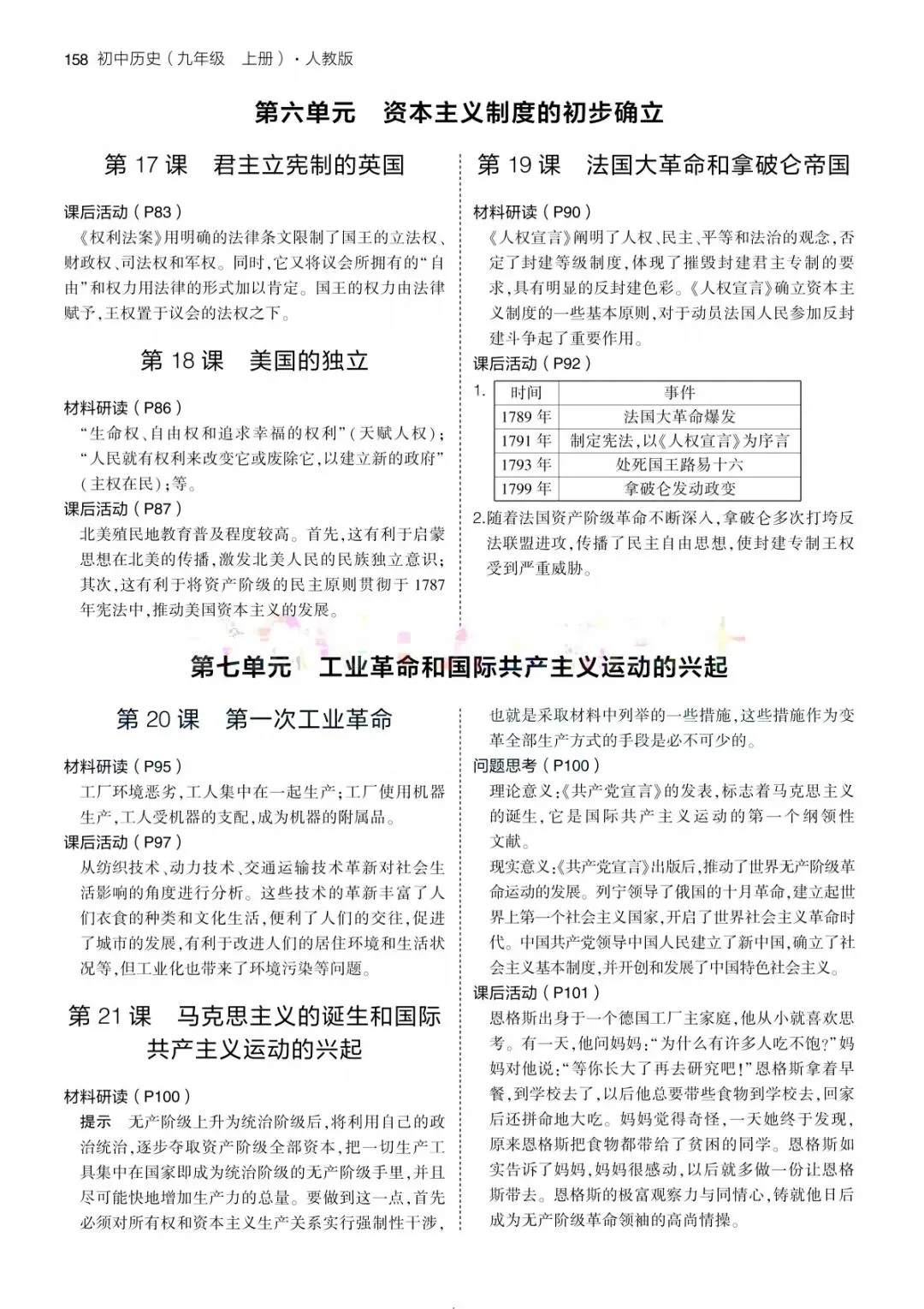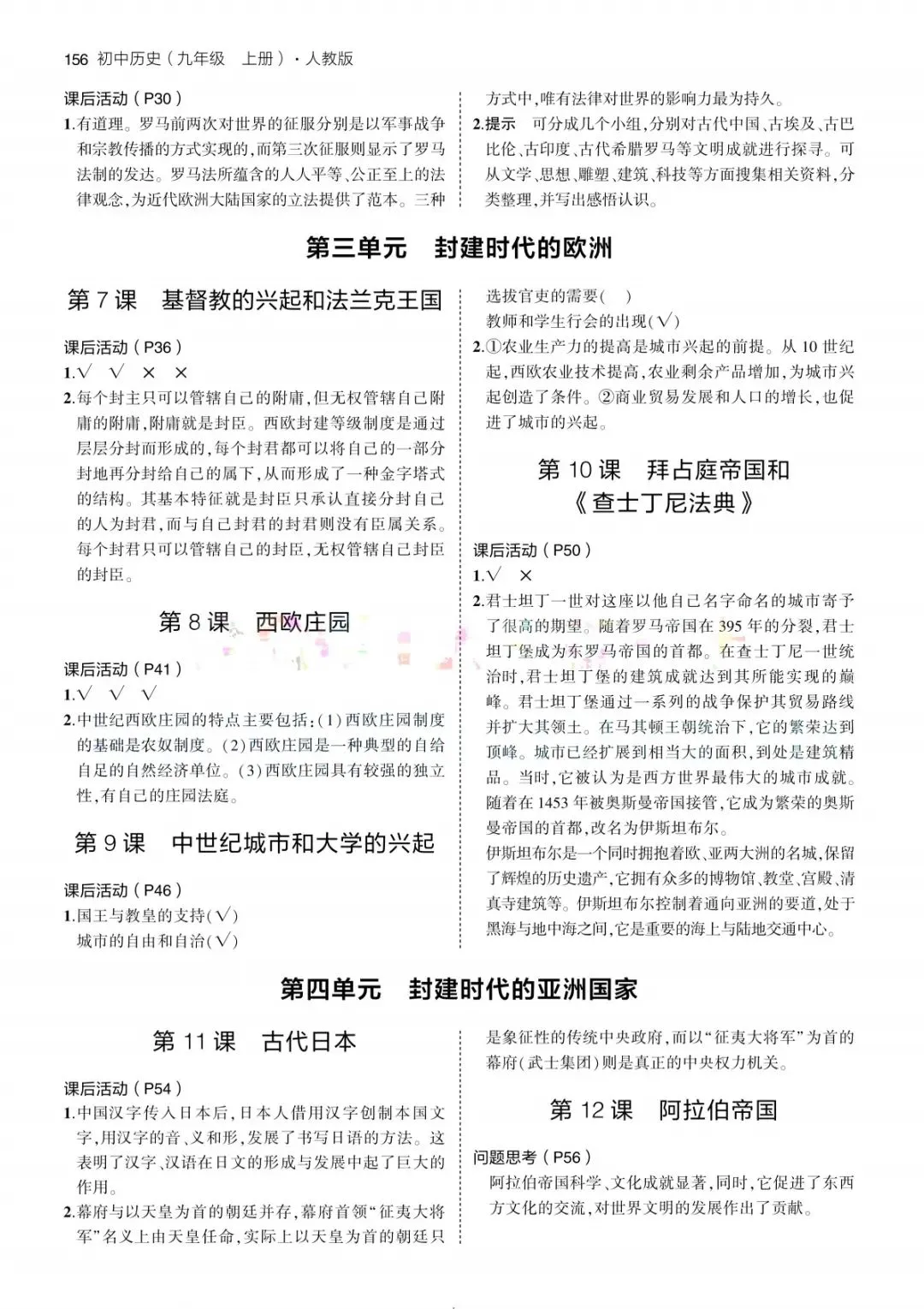 初中历史·九年级上册《教材习题参考答案》(可下载打印)