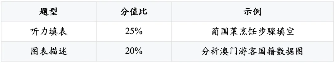 教材练习对接“澳门四校联考”题型(如听力填表、图表描述)。