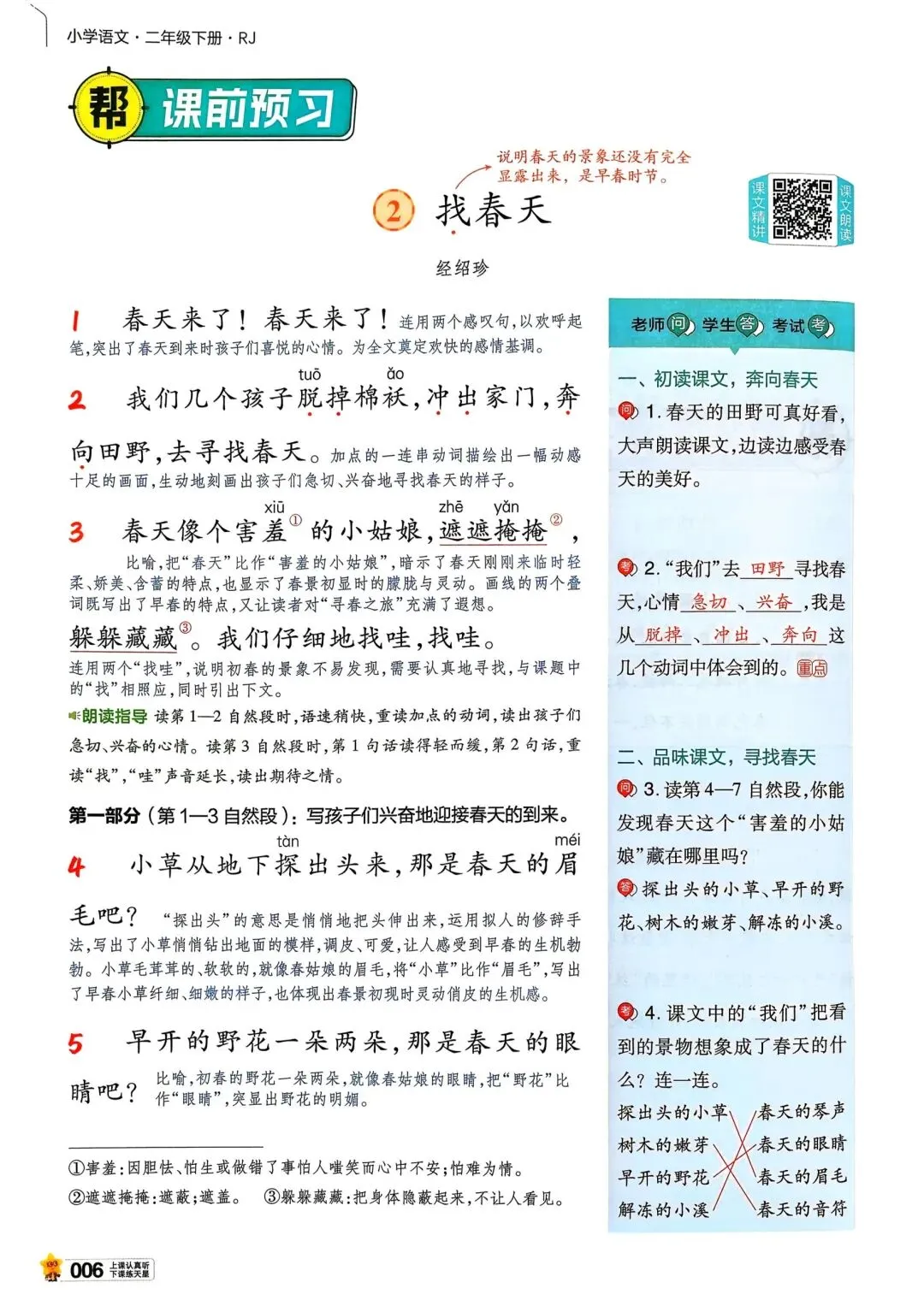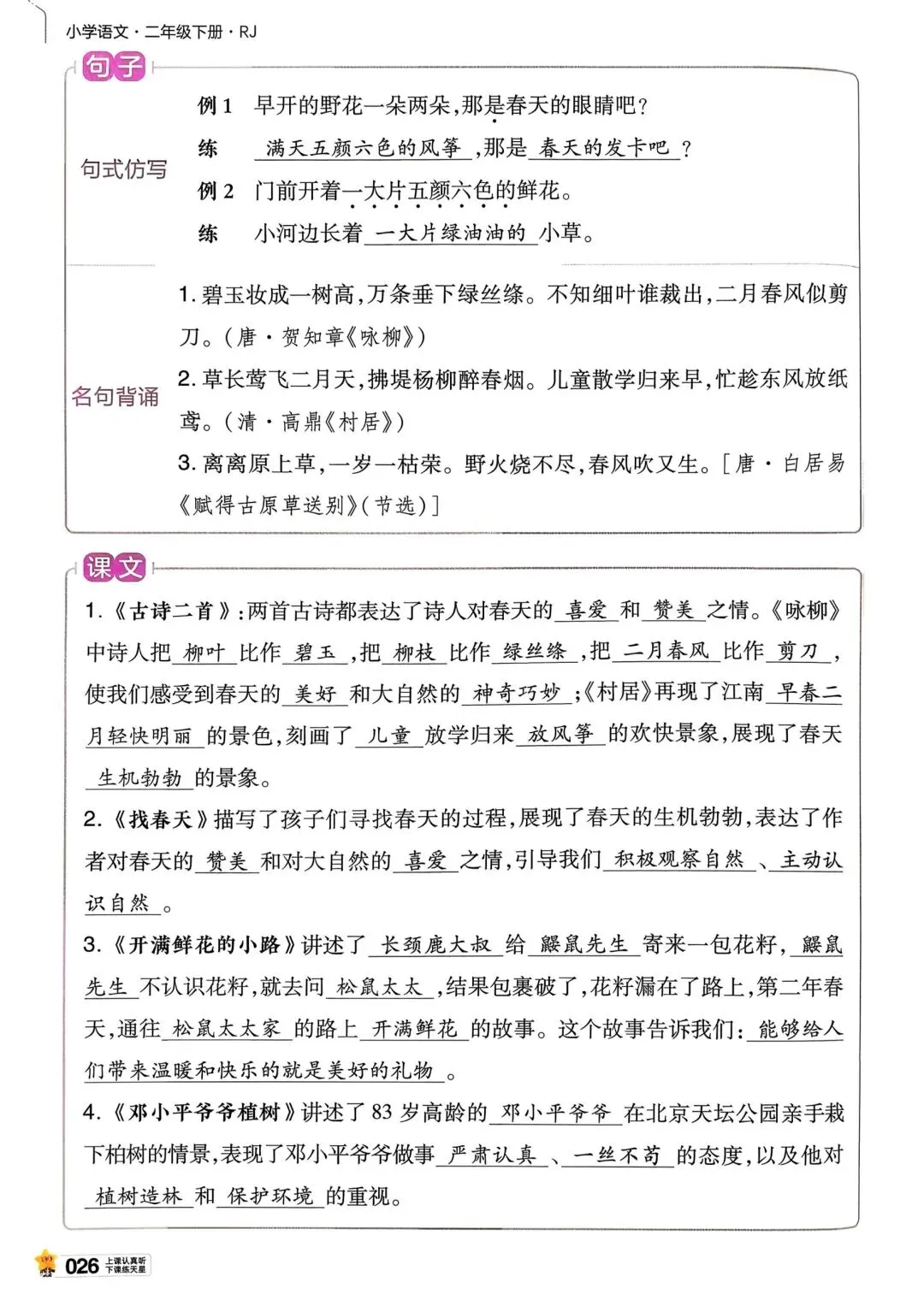 >26春教材帮二年级下册新课标小学语文课堂笔记