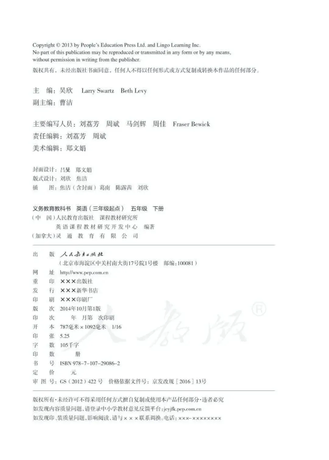>人教版PEP新教材小学英语五年级下册高清电子课本