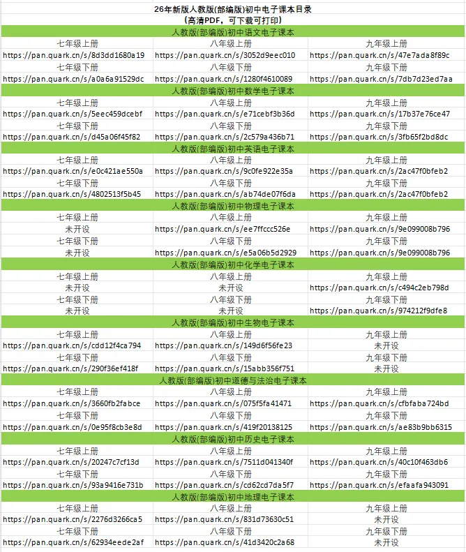 #初中课本2025年2026年秋春新版人教版部编版初中7~9年级初一初二初三年级语文数学英语物理化学生物思想政治历史地理电子课本语文数学英语物理化学生物思想政治历史地理教材上册下册高清PDF可下载打印pdf电子版资源分享预先复习用忘带课本线上学习专用