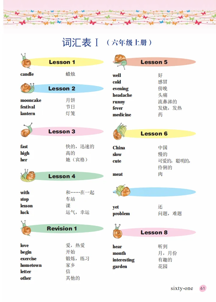 翻译版 接力小学英语六年级上册Revision1电子课本和音频