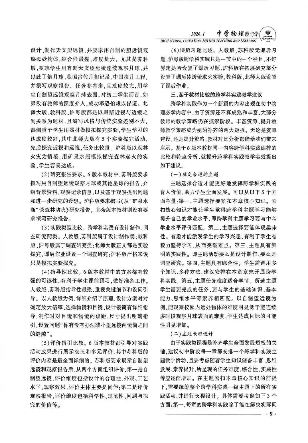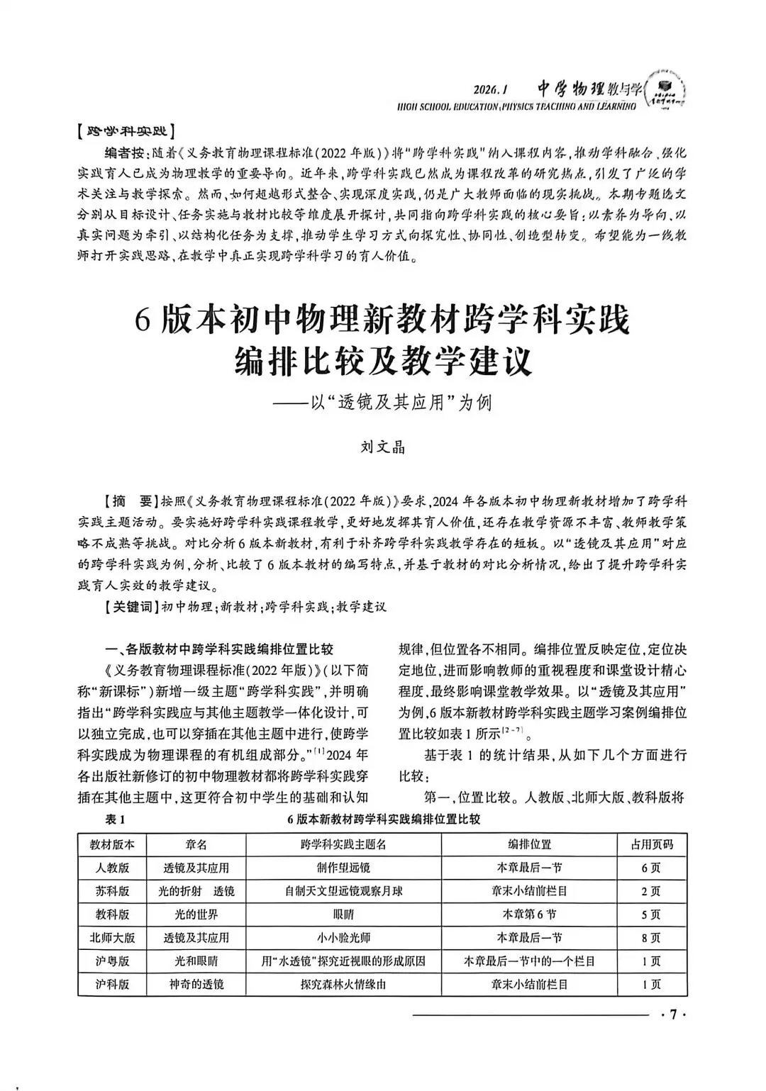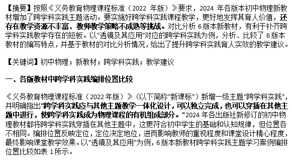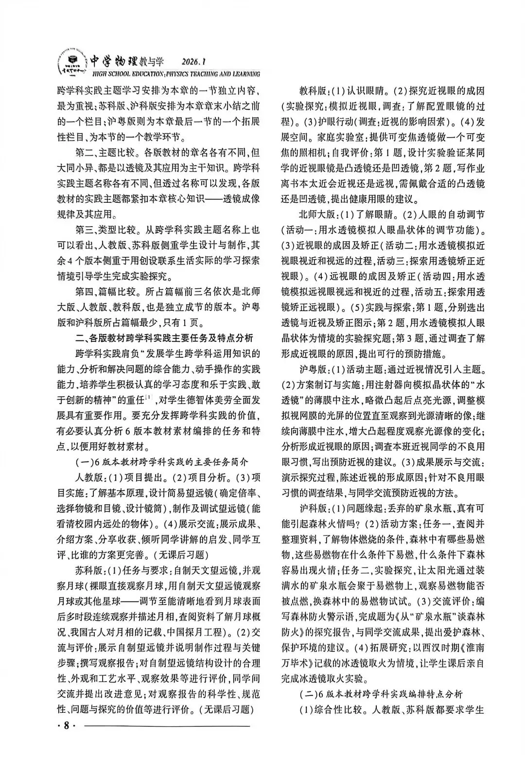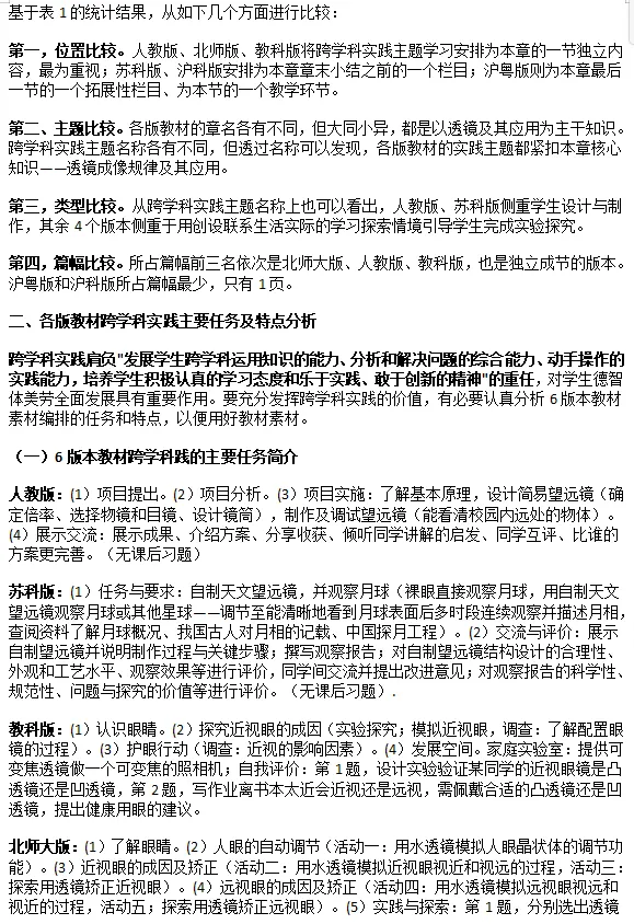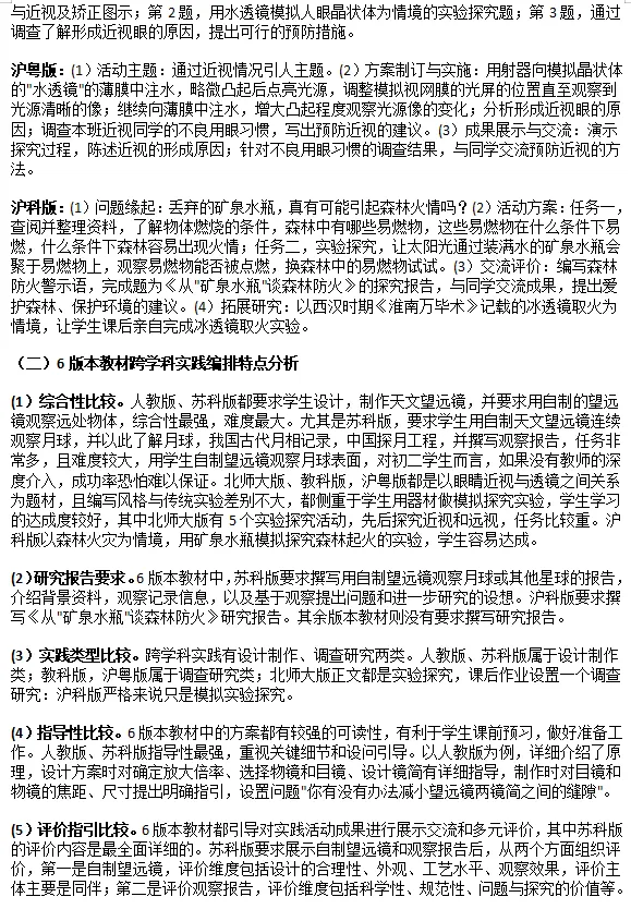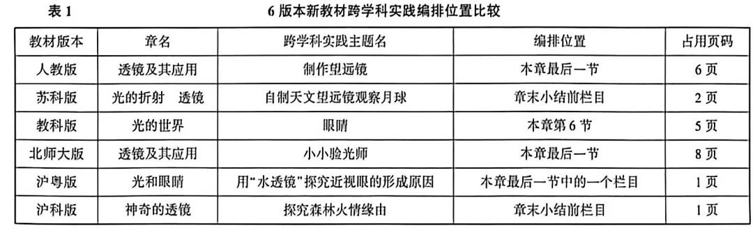 文章1:6版本初中物理新教材跨学科实践编排比较及教学建议——以"透镜及其应用"为例