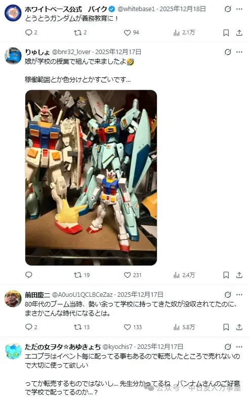 不少网友也对这样的小学课程教育感到惊喜,没想到自己过去八零年代还是个带模型去学校会被没收的记忆,现在已经变成学校发模型给学生组的年代了。