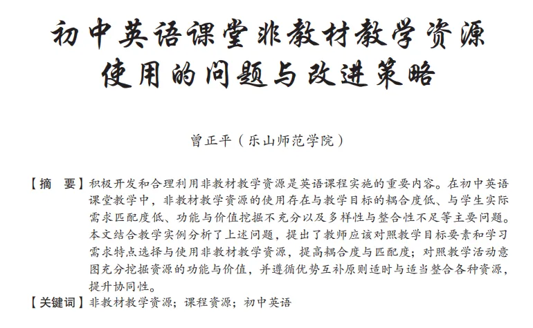 初中英语课堂非教材教学资源 使用的问题与改进策略