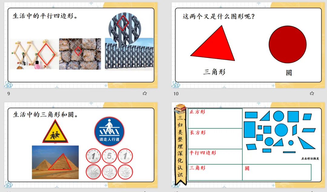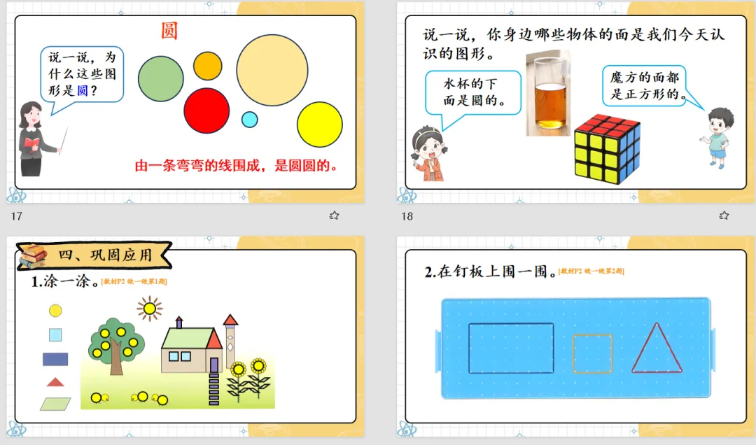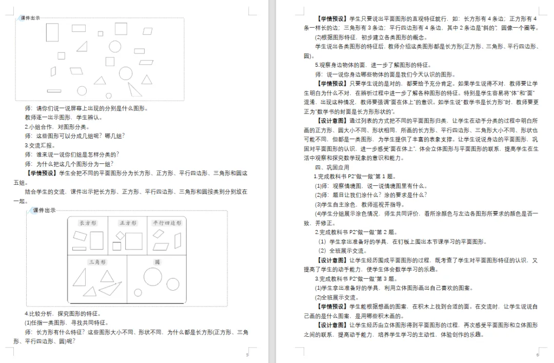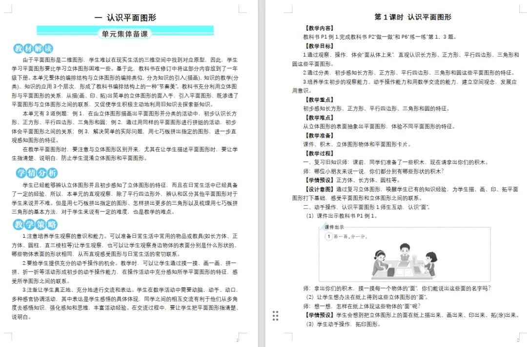 >【数学教案课件】新教材教科版版小学数学一年级下册全册文本配套教案课件(含反思)《第1课时 认识平面图形》