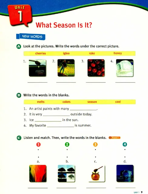 下面就以《Listening Time》第1册Unit 1为例,来看看具体该如何使用这套练习册。