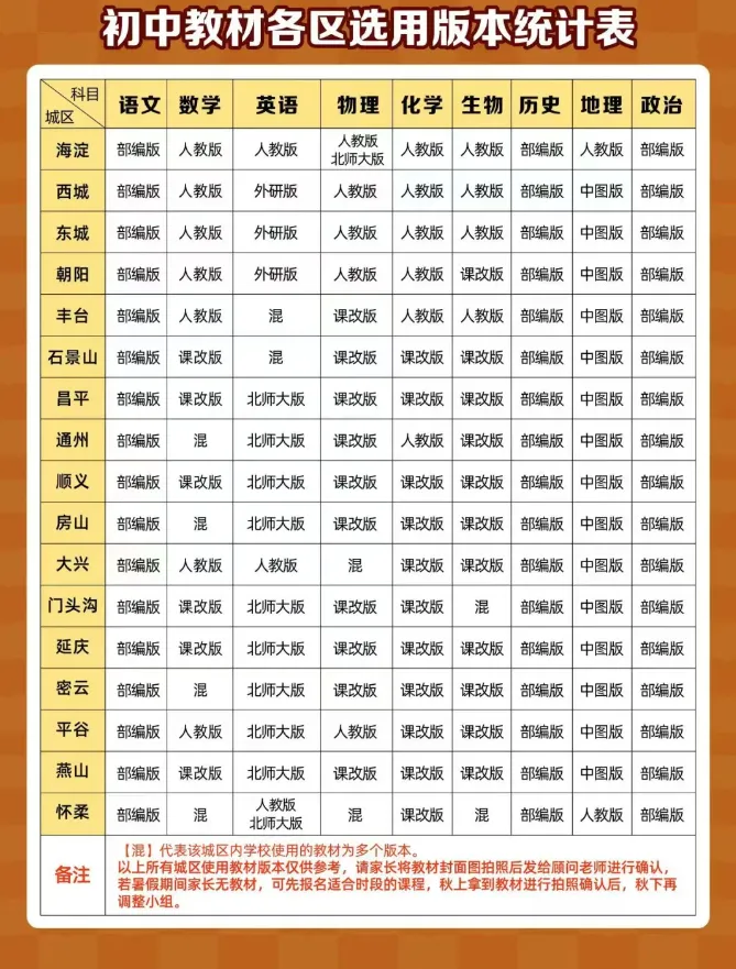 北京各区教材使用版本,各位考生可作参考,最终以学校发布为准。