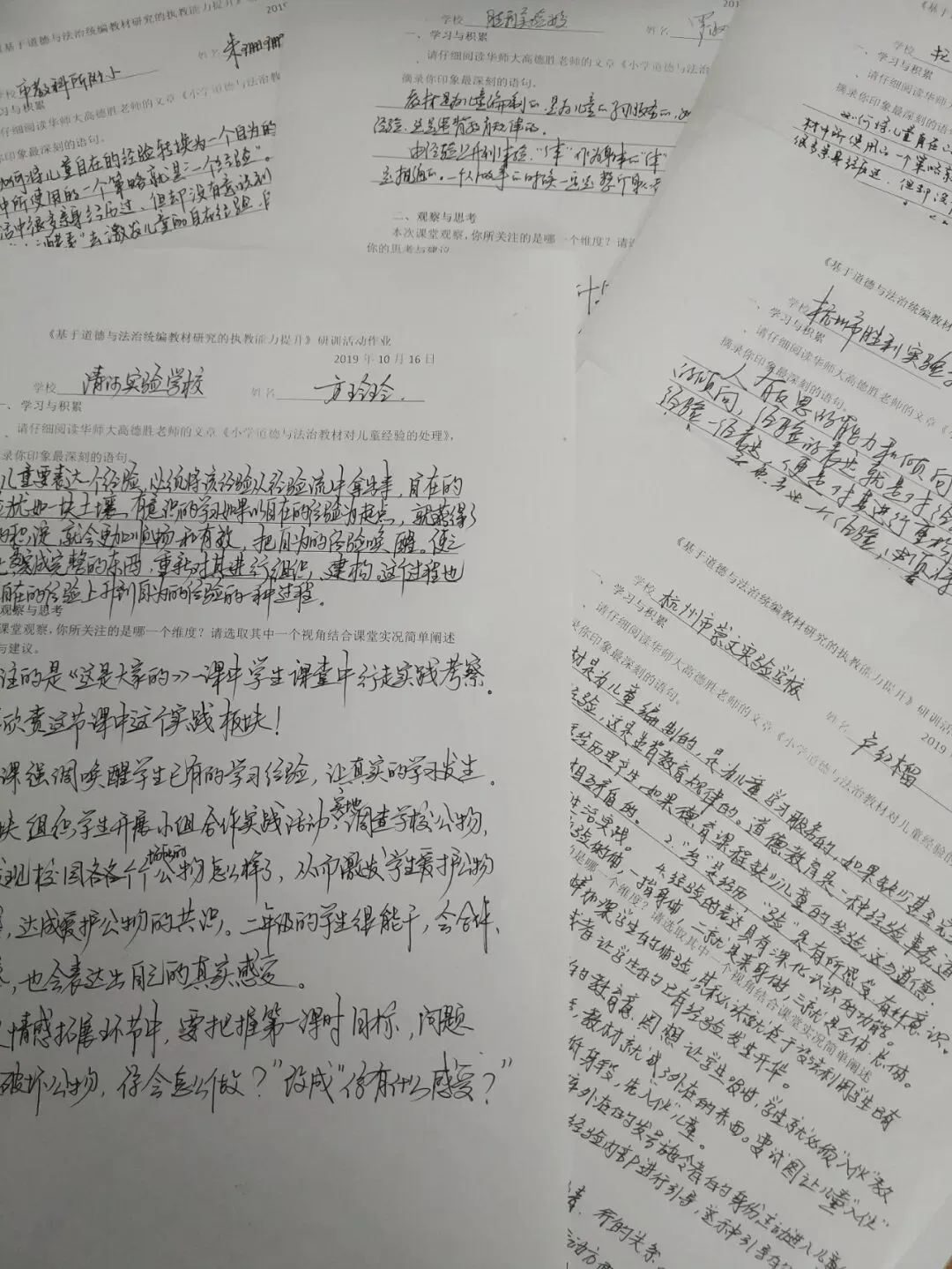 之后,老师们结合理论学习,立足教材理解,以自己的观察视角对现场教学展示的两堂课提出了自己的思考与建议。老师们认为:马老师面对上学才一个半月的孩子,就能大胆以小组合作交流的方式进行组织学习,有利于学生合作、互助及规则意识培养;鼓励学生尝试自身经验的表达与重构,有利于通过引导与实践培养学生综合素养。叶老师则以学生个体经验为学习起点,在课堂上智慧地运用追问,有的放矢地引导、帮助学生分清“公共场所”与“公物”的概念,先在看似轻松地聊天中逐渐清晰认识,从生活经验归纳出较为抽象的概念,然后又在真实情境中通过实地观察来提高认识,加深体验,逐步建立一个新的生活认知,应养成良好的爱护公物好习惯,从而实现学科育人的目标。同时,老师们对低年级课堂管理的方式与步骤、教师及时性评价与引导语的正确与规范、基于教材正确解读与学生经验利用的设计改进等方面也提出了众多高贵的建议。
