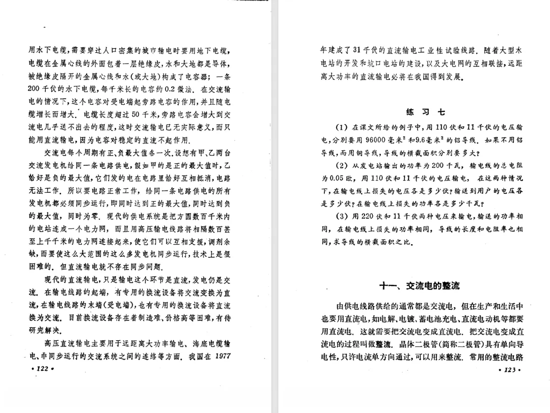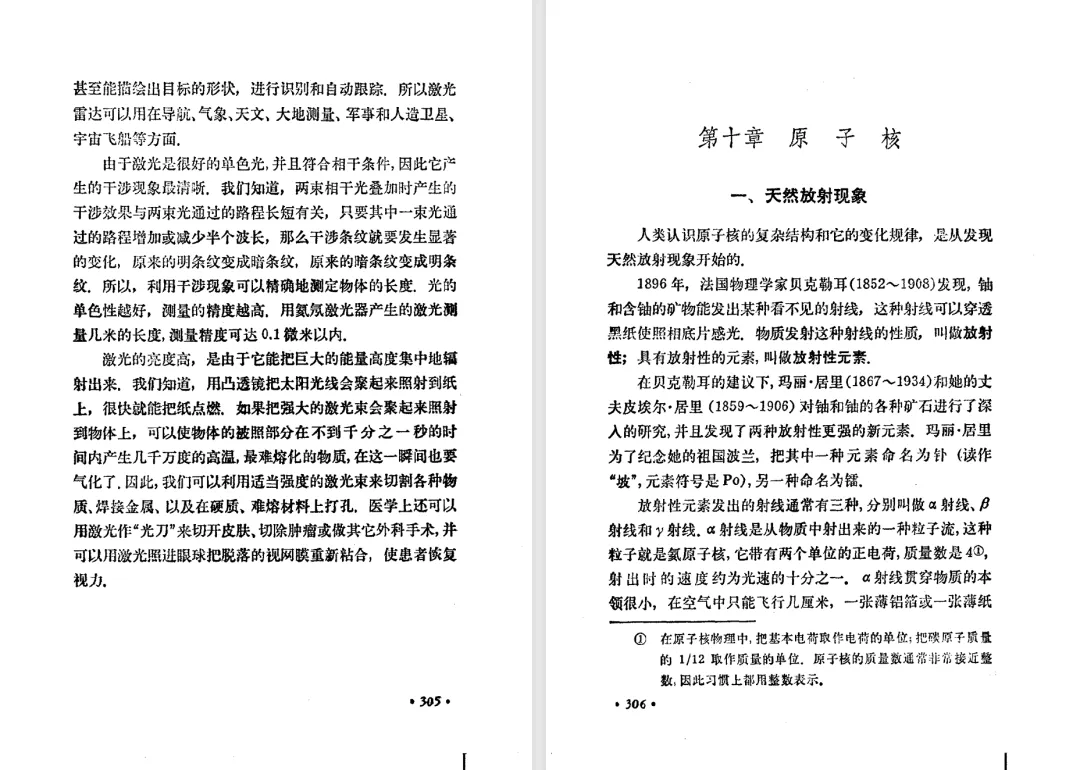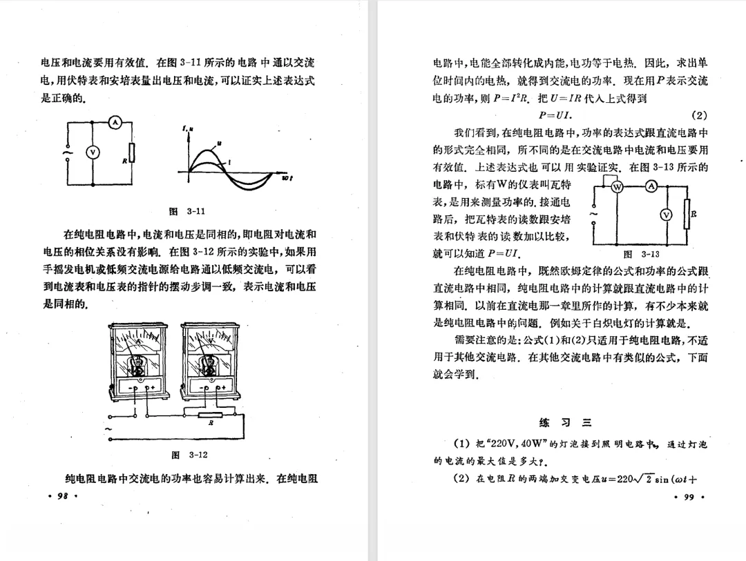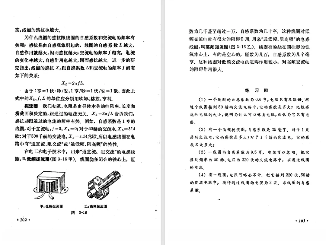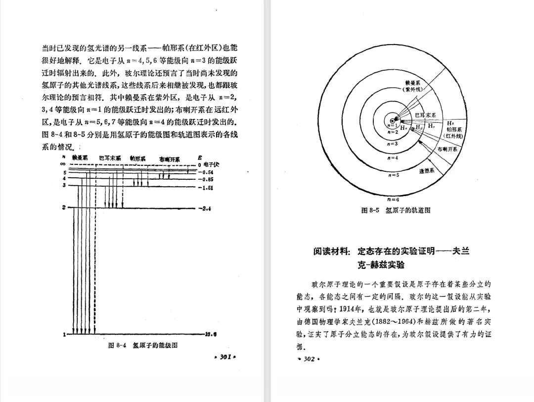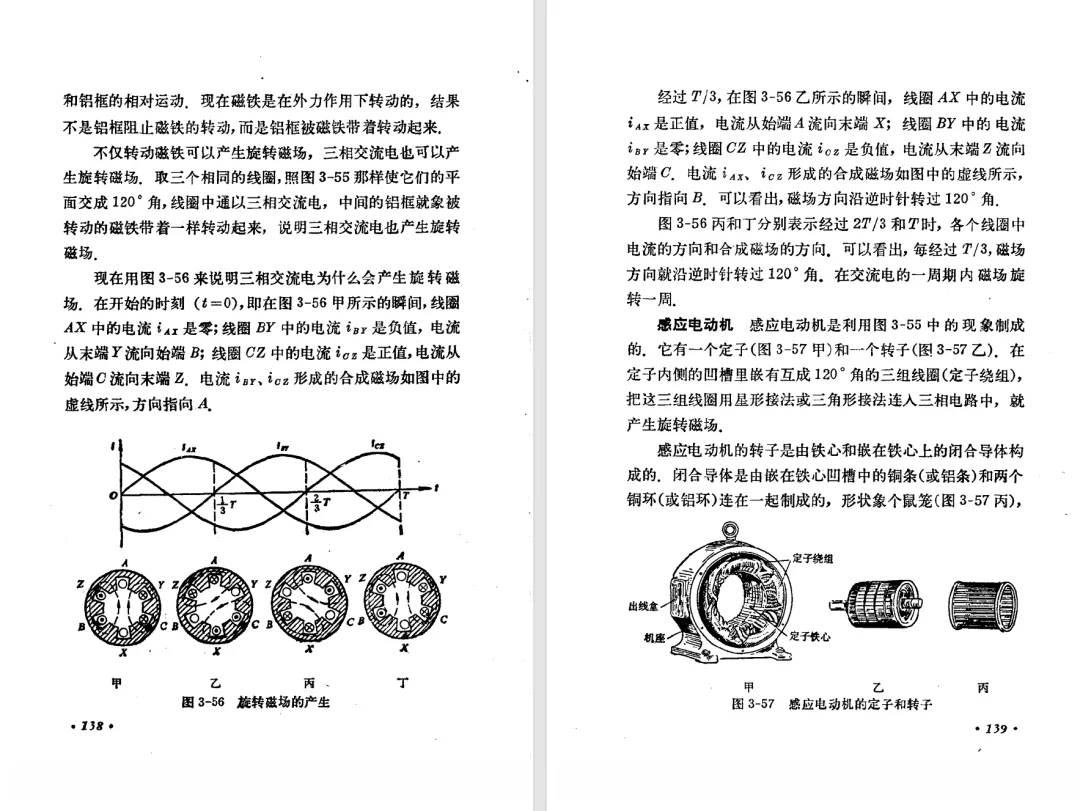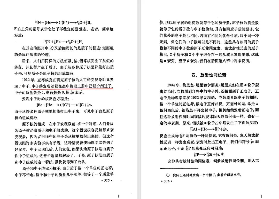 本文对高级中学课本 物理 甲种本 第三册进行详细介绍。本文将物理甲种本与上一版全日制十年制学校高中物理课本(简称旧教材)对比,展示两版教材的差异,从而了解教学要求和教材编写方式和风格的改变。先对比旧教材和甲种本的目录。甲种本同样对旧教材的小节做了拆分。甲种本前三节对应旧教材第一节。甲种本第五节磁通量在旧教材是在电磁感应这章的,甲种本第七节第八节对应旧教材第四节。甲种本第十节第十一节对应旧教材第六节。甲种本删除了测定带电粒子的质量,增加荷质比的测定 质谱仪。甲种本把磁通量放在磁场这一章,用一页半的正文进行介绍。教材给出的磁通量计算公式,覆盖了平面与磁力线垂直的情况和平面与磁力线不垂直的情况。旧教材在介绍电磁感应时才介绍磁通量。教材仅给出了平面与磁力线垂直情况下的磁通量计算公式,不垂直的情况仅文字说明,没有给公式。这种旧教材理论性不如甲种本情况是很少见的。回到甲种本。第六节介绍直线电流的磁场,这节内容对应于点电荷的电场。第七节介绍磁场对电流的作用力。安培力的计算实际上是矢量外积运算,但是甲种本给出的是标量形式的公式,然后根据左手定则确定力的方向,旧教材也如此。下图中的阅读材料介绍了物理基本单位安培。国际单位制中,安培是基本单位,电量单位是导出单位,这是比较反直觉的。下面看旧教材。旧教材对直线电流的磁场的介绍非常详细,不仅通过实验探求影响磁场的因素,还在推导出磁场强度公式后给出了一道例题,显然旧教材更重视本节内容,甲种本弱化了。注意,下图第106页的例题中,表示磁感应强度的Ba和Bb是矢量形式的。事实上旧教材物理下册中的矢量表达式已经少很多了,到了电磁学部分,确实有些公式不太方便用矢量形式表示,但是教材还是尽可能地使用矢量表达式。在第四节 磁场对电流的作用力一节,下图第110页的例题,与甲种本阅读材料介绍国际单位制物理基本单位安培的场景是相同的。本节末尾,如下图红框所示,教材提到电流表灵敏度高,可以测量微弱电流,对过载敏感,说白了就是可测量范围小。本节末尾,如下图红框所示,旧教材多了一段话,说明可以将电流表改造成安培表、伏特表、欧姆表。甲种本和旧教材都是先介绍大量程电表的原理,再介绍基本的敏感度高且量程小的电流表。下图红框这段话的存在可以呼应前文,让教材内容更完整。不知道为什么甲种本删掉了这段话。旧教材给出的对应小节讲的是下图的测定的带电粒子的质量。甲种本同样对小节做了拆分。旧教材第二节对应甲种本第二节和第三节。旧教材第三节对应甲种本第四节和第五节。甲种本中直流电动机的反电动势一节的部分内容,在旧教材中出现在稳恒电流一章欧姆定律的应用一节。本章内容新旧教材的编写方式差别非常大,需要进行仔细对比。先看甲种本如何介绍电磁感应现象。教材给出了三个实验,引出利用磁场产生电流的三种方法。注意三个实验的示意图,所用的实验设备和材料是比较常规的。在第51页开头,教材闭合电路产生电流的条件做了总结。后面的阅读材料介绍法拉第如何发现电磁感应现象,也是介绍了物理学历史。再看旧教材。旧教材在第一节通过两个小标题介绍磁场产生电流的方法。第一个小标题,导体和磁场的相对运动,对应甲种本的实验一和实验二。第二个小标题,磁场的变化,对应甲种本的实验三。需要注意的是,旧教材给出的实验示意图比较抽象,可能只有理论上的可行性,如果真的要做这些实验,所用的实验和材料呈现出的样子可能和示意图有较大的差别。相比之下,甲种本的实验有更强的可行性。上图第132页末尾介绍磁通量,甲种本在磁场一章已经介绍了。甲种本的编排方法导致学了磁通量后没有实际应用,让磁通量这个概念相对孤立地存在。下图中第134页,教材总结闭合电路产生电流的条件。回到甲种本。甲种本介绍楞次定律有两个小节,前一个小节介绍楞次定律,后一个小节介绍楞次定律的应用。旧教材花了较大的篇幅介绍引出楞次定律的实验,对于楞次定律的应用篇幅较少。先看第四节,本节一开头,教材就通过现象直接引出法拉第电磁感应定律。然后给出闭合电路感生电动势的计算方法,得出(1)式。接下来研究导体切割磁力线产生的感生电动势的计算方法,得出(3)式。接下来的第五节,教材从能量守恒的角度研究导线切割磁力线所产生的感生电动势。旧教材的介绍法拉第电磁感应定律的方法完全不同。如下图所示,教材以导线切割磁感线过程中的能量守恒原则推导出了导体切割磁感线所得的感生电动势的公式,即(1)式。然后进一步研究磁通量变化率与感生电动势的关系,得出(3)式。进而得出法拉第电磁感应定律。可以看出,旧教材是通过直线导体切割磁感线中的能量守恒关系得出感生电动势的计算方法,进而推导出感生电动势与磁通量变化率成正比这个规律,即法拉第电磁感应定律。而甲种本是先通过简单的定性的实验直接引出法拉第电磁感应定律,再推导直线导体切割磁感线所产生的感生电动势,最后研究直线导体切割磁感线中的能量守恒关系。两个版本教材编排完全是相反的。旧教材体现的是逐步得出法拉第电磁感应定律的过程,甲种本是先给出法拉第电磁感应定律,再研究电磁感应中的一些关系。