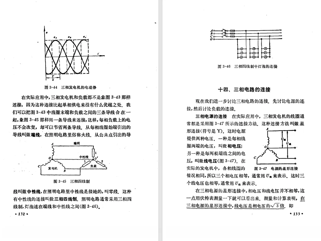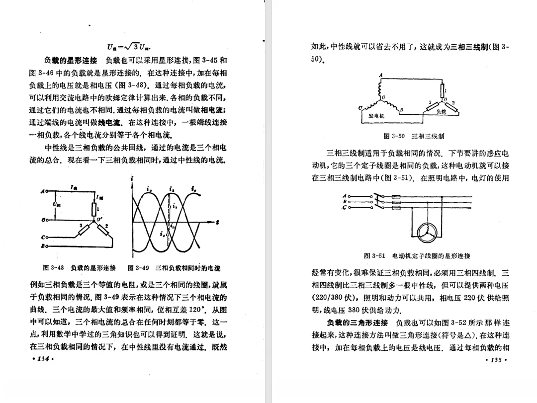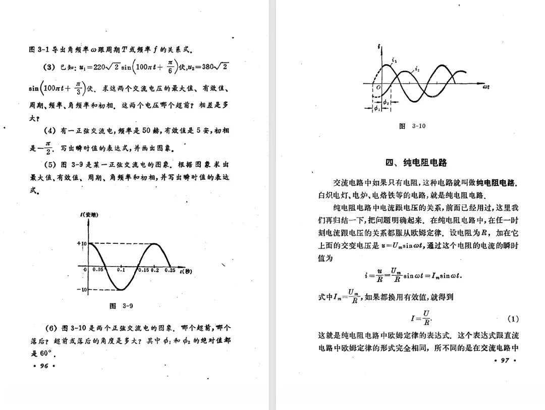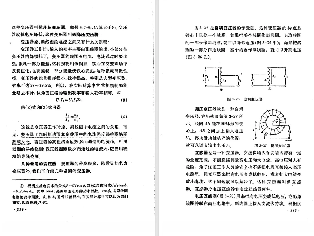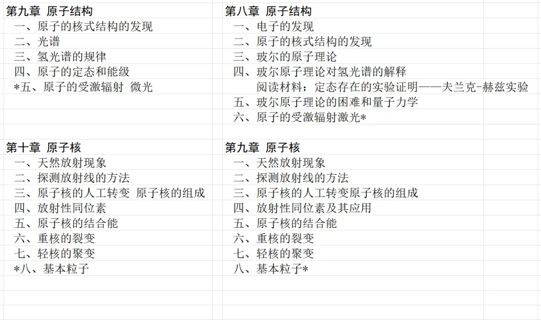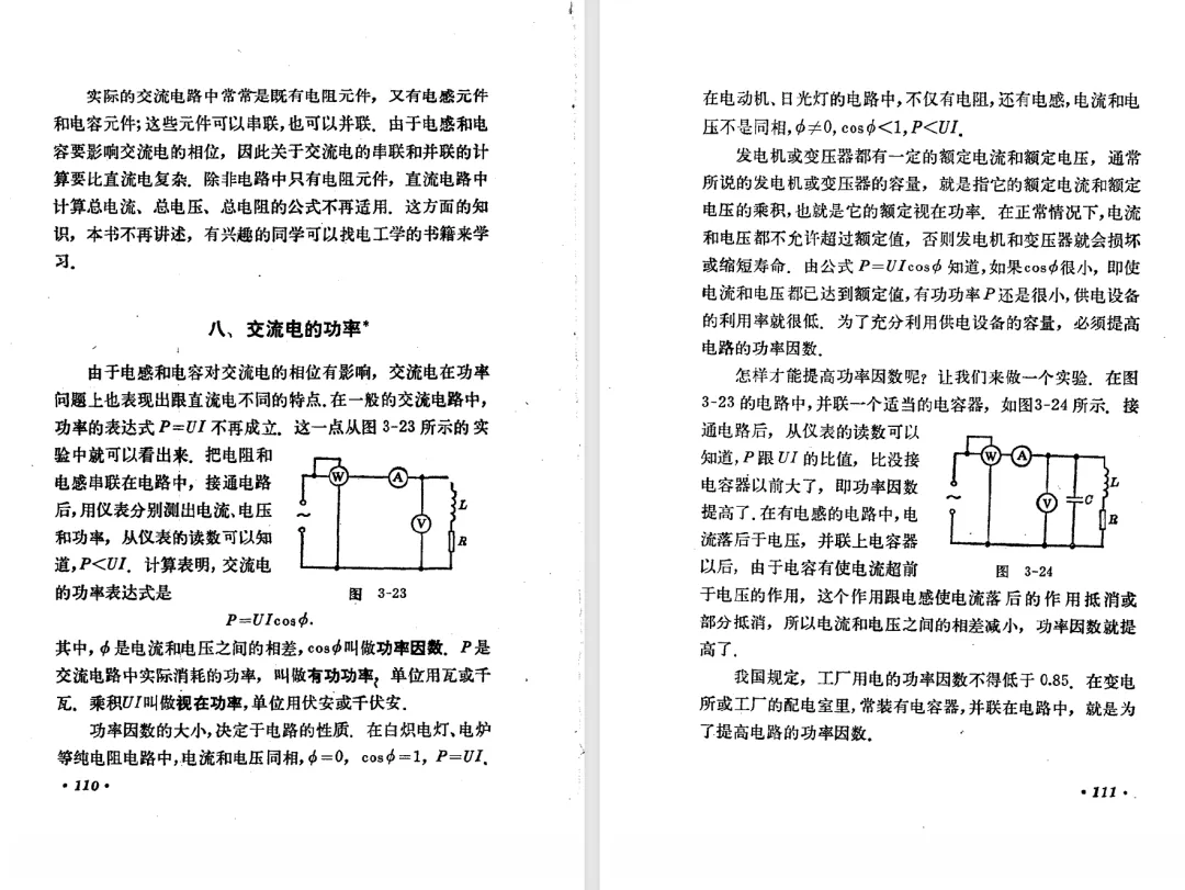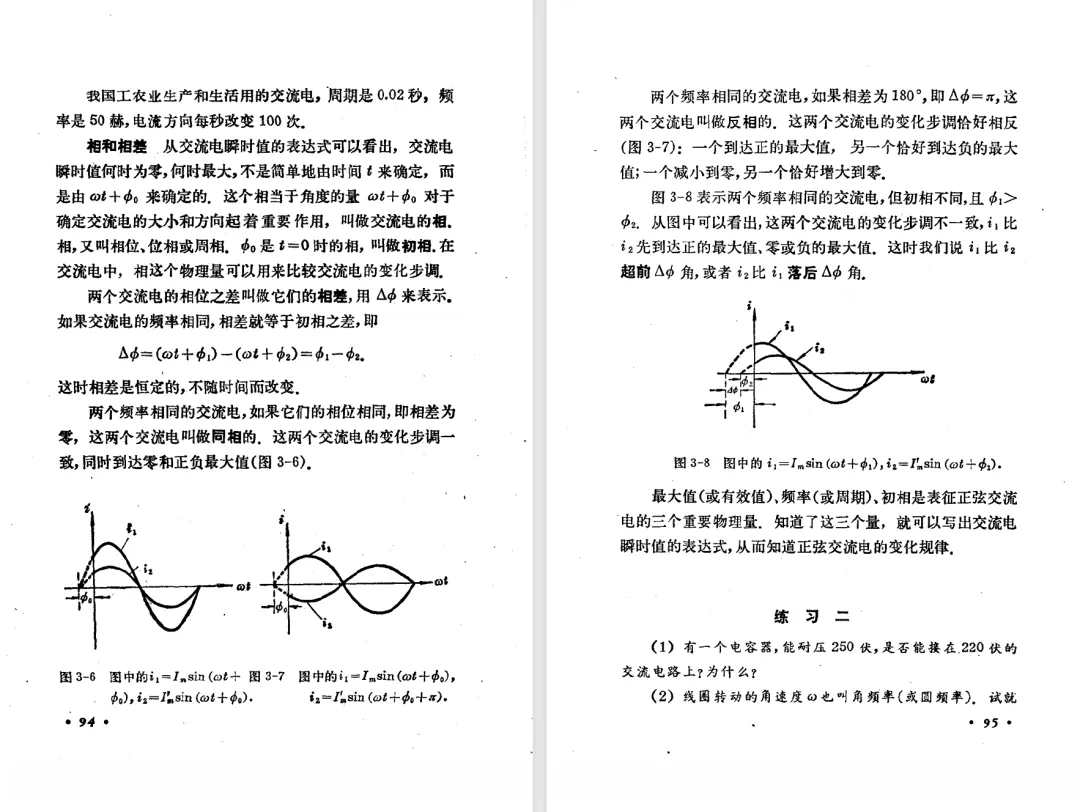 本文对高级中学课本 物理 甲种本 第三册进行详细介绍。本文将物理甲种本与上一版全日制十年制学校高中物理课本(简称旧教材)对比,展示两版教材的差异,从而了解教学要求和教材编写方式和风格的改变。先对比旧教材和甲种本的目录。甲种本同样对旧教材的小节做了拆分。甲种本前三节对应旧教材第一节。甲种本第五节磁通量在旧教材是在电磁感应这章的,甲种本第七节第八节对应旧教材第四节。甲种本第十节第十一节对应旧教材第六节。甲种本删除了测定带电粒子的质量,增加荷质比的测定 质谱仪。甲种本把磁通量放在磁场这一章,用一页半的正文进行介绍。教材给出的磁通量计算公式,覆盖了平面与磁力线垂直的情况和平面与磁力线不垂直的情况。旧教材在介绍电磁感应时才介绍磁通量。教材仅给出了平面与磁力线垂直情况下的磁通量计算公式,不垂直的情况仅文字说明,没有给公式。这种旧教材理论性不如甲种本情况是很少见的。回到甲种本。第六节介绍直线电流的磁场,这节内容对应于点电荷的电场。第七节介绍磁场对电流的作用力。安培力的计算实际上是矢量外积运算,但是甲种本给出的是标量形式的公式,然后根据左手定则确定力的方向,旧教材也如此。下图中的阅读材料介绍了物理基本单位安培。国际单位制中,安培是基本单位,电量单位是导出单位,这是比较反直觉的。下面看旧教材。旧教材对直线电流的磁场的介绍非常详细,不仅通过实验探求影响磁场的因素,还在推导出磁场强度公式后给出了一道例题,显然旧教材更重视本节内容,甲种本弱化了。注意,下图第106页的例题中,表示磁感应强度的Ba和Bb是矢量形式的。事实上旧教材物理下册中的矢量表达式已经少很多了,到了电磁学部分,确实有些公式不太方便用矢量形式表示,但是教材还是尽可能地使用矢量表达式。在第四节 磁场对电流的作用力一节,下图第110页的例题,与甲种本阅读材料介绍国际单位制物理基本单位安培的场景是相同的。本节末尾,如下图红框所示,教材提到电流表灵敏度高,可以测量微弱电流,对过载敏感,说白了就是可测量范围小。本节末尾,如下图红框所示,旧教材多了一段话,说明可以将电流表改造成安培表、伏特表、欧姆表。甲种本和旧教材都是先介绍大量程电表的原理,再介绍基本的敏感度高且量程小的电流表。下图红框这段话的存在可以呼应前文,让教材内容更完整。不知道为什么甲种本删掉了这段话。旧教材给出的对应小节讲的是下图的测定的带电粒子的质量。甲种本同样对小节做了拆分。旧教材第二节对应甲种本第二节和第三节。旧教材第三节对应甲种本第四节和第五节。甲种本中直流电动机的反电动势一节的部分内容,在旧教材中出现在稳恒电流一章欧姆定律的应用一节。本章内容新旧教材的编写方式差别非常大,需要进行仔细对比。先看甲种本如何介绍电磁感应现象。教材给出了三个实验,引出利用磁场产生电流的三种方法。注意三个实验的示意图,所用的实验设备和材料是比较常规的。在第51页开头,教材闭合电路产生电流的条件做了总结。后面的阅读材料介绍法拉第如何发现电磁感应现象,也是介绍了物理学历史。再看旧教材。旧教材在第一节通过两个小标题介绍磁场产生电流的方法。第一个小标题,导体和磁场的相对运动,对应甲种本的实验一和实验二。第二个小标题,磁场的变化,对应甲种本的实验三。需要注意的是,旧教材给出的实验示意图比较抽象,可能只有理论上的可行性,如果真的要做这些实验,所用的实验和材料呈现出的样子可能和示意图有较大的差别。相比之下,甲种本的实验有更强的可行性。上图第132页末尾介绍磁通量,甲种本在磁场一章已经介绍了。甲种本的编排方法导致学了磁通量后没有实际应用,让磁通量这个概念相对孤立地存在。下图中第134页,教材总结闭合电路产生电流的条件。回到甲种本。甲种本介绍楞次定律有两个小节,前一个小节介绍楞次定律,后一个小节介绍楞次定律的应用。旧教材花了较大的篇幅介绍引出楞次定律的实验,对于楞次定律的应用篇幅较少。先看第四节,本节一开头,教材就通过现象直接引出法拉第电磁感应定律。然后给出闭合电路感生电动势的计算方法,得出(1)式。接下来研究导体切割磁力线产生的感生电动势的计算方法,得出(3)式。接下来的第五节,教材从能量守恒的角度研究导线切割磁力线所产生的感生电动势。旧教材的介绍法拉第电磁感应定律的方法完全不同。如下图所示,教材以导线切割磁感线过程中的能量守恒原则推导出了导体切割磁感线所得的感生电动势的公式,即(1)式。然后进一步研究磁通量变化率与感生电动势的关系,得出(3)式。进而得出法拉第电磁感应定律。可以看出,旧教材是通过直线导体切割磁感线中的能量守恒关系得出感生电动势的计算方法,进而推导出感生电动势与磁通量变化率成正比这个规律,即法拉第电磁感应定律。而甲种本是先通过简单的定性的实验直接引出法拉第电磁感应定律,再推导直线导体切割磁感线所产生的感生电动势,最后研究直线导体切割磁感线中的能量守恒关系。两个版本教材编排完全是相反的。旧教材体现的是逐步得出法拉第电磁感应定律的过程,甲种本是先给出法拉第电磁感应定律,再研究电磁感应中的一些关系。