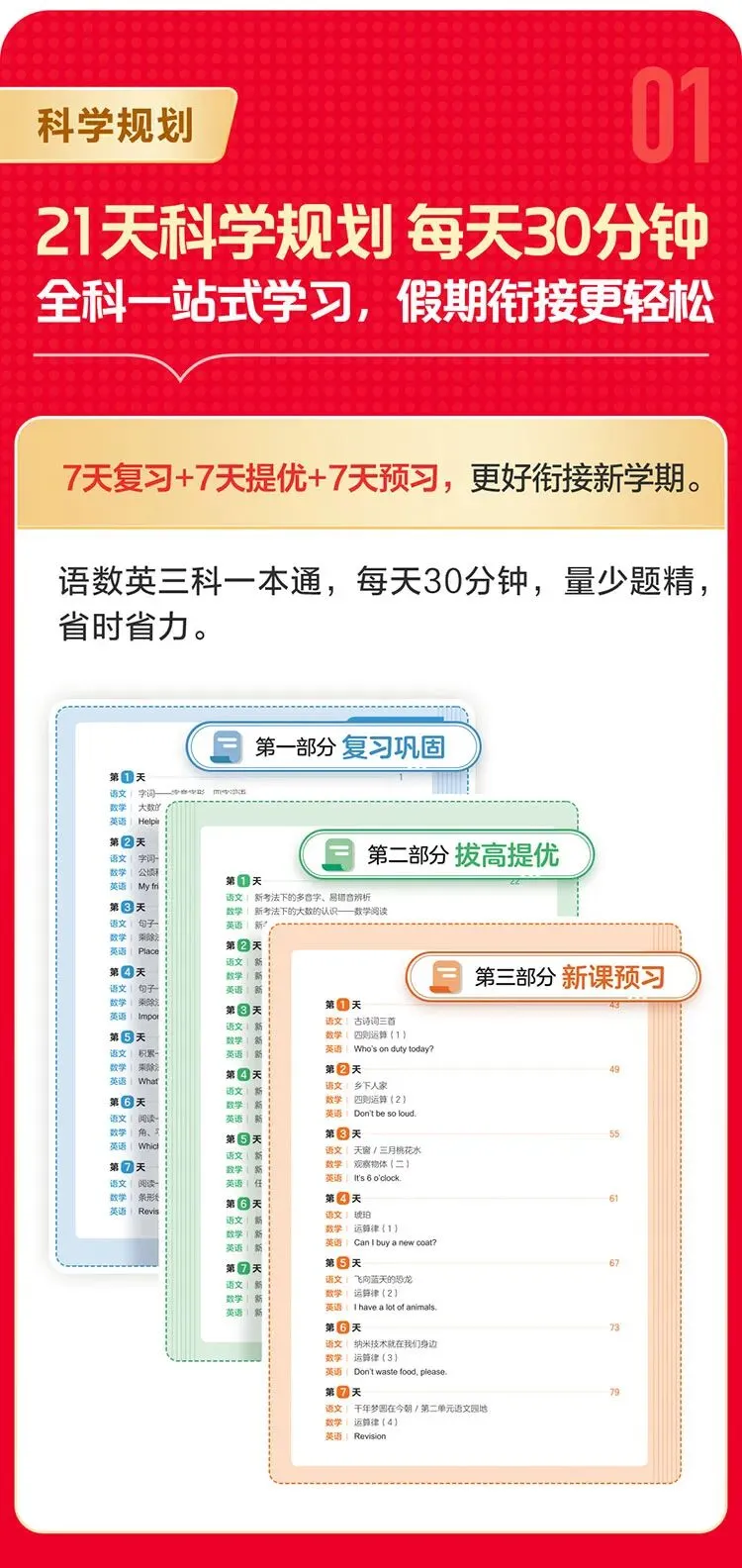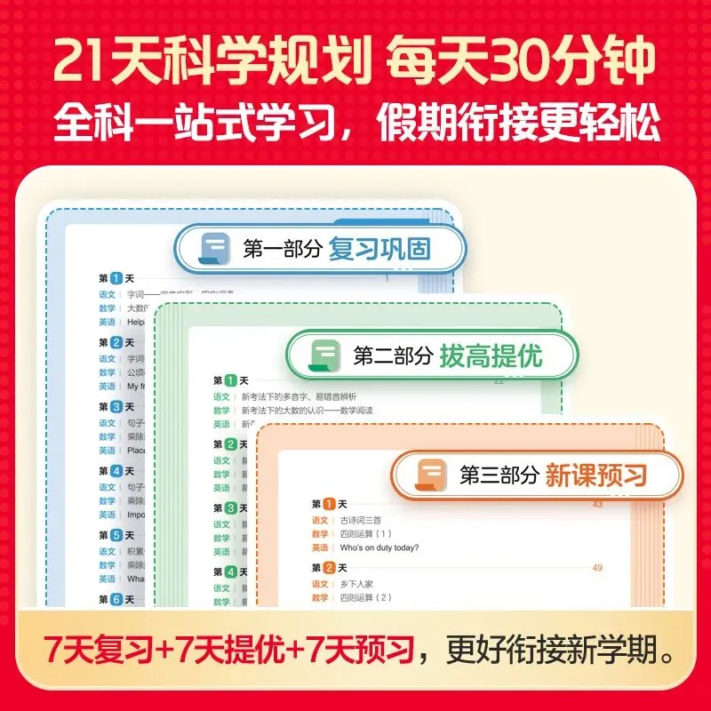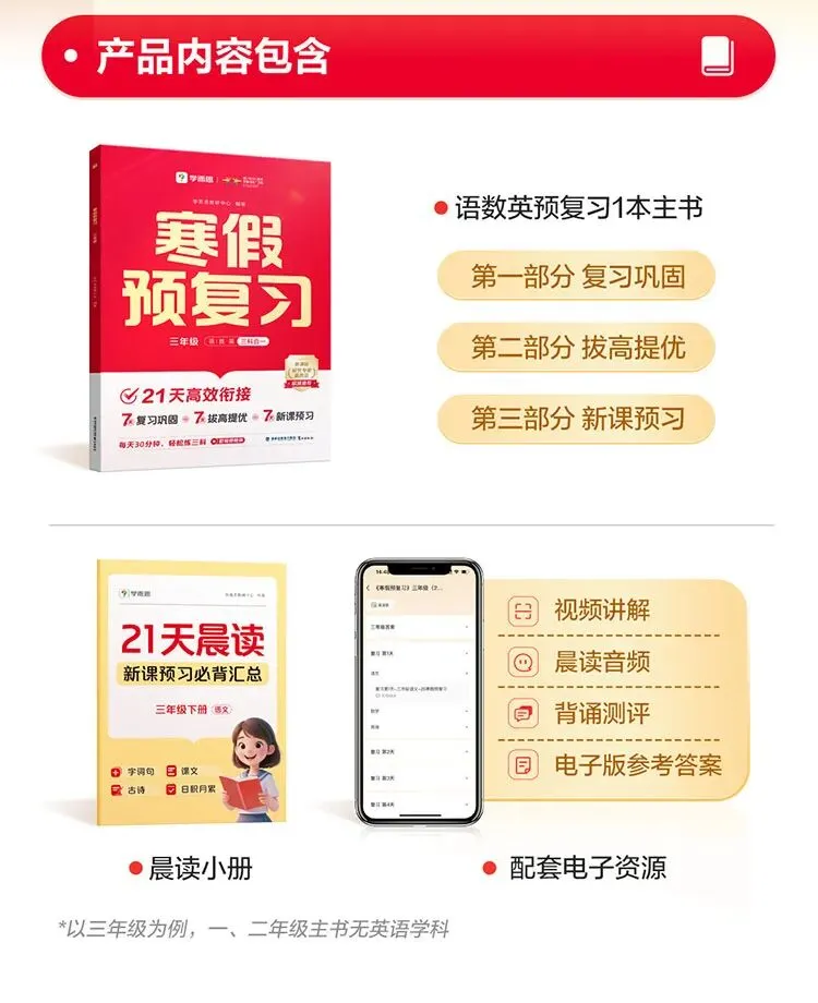 动作快的妈妈已经给孩子准备了这本学而思《寒假预复习》(1-6年级),语文数学英语三合一(1-2年级只含语数两科)。