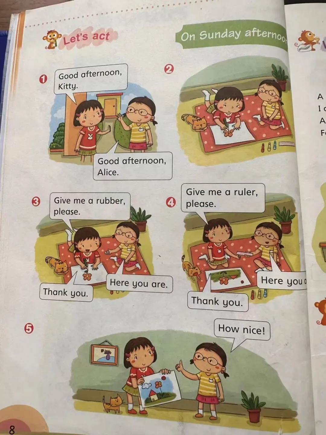 下午见到同学,你可以说“Good afternoon, Lily.” 。当同学给你展示一幅好看的画时,你可以说“How nice!” 。