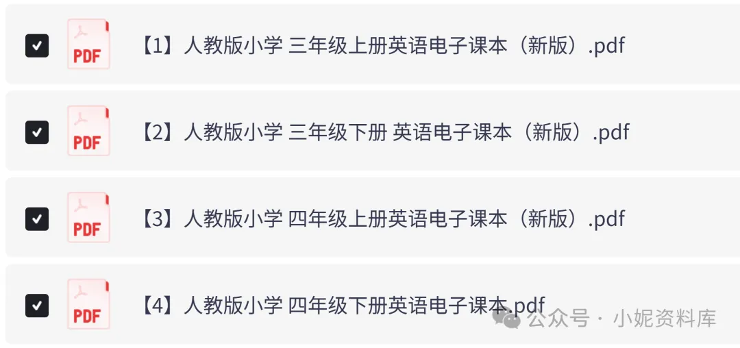 通过夸克网盘分享的文件:「小学英语电子课本(共8册)」链接:https://pan.quark.cn/s/57e07e802af3