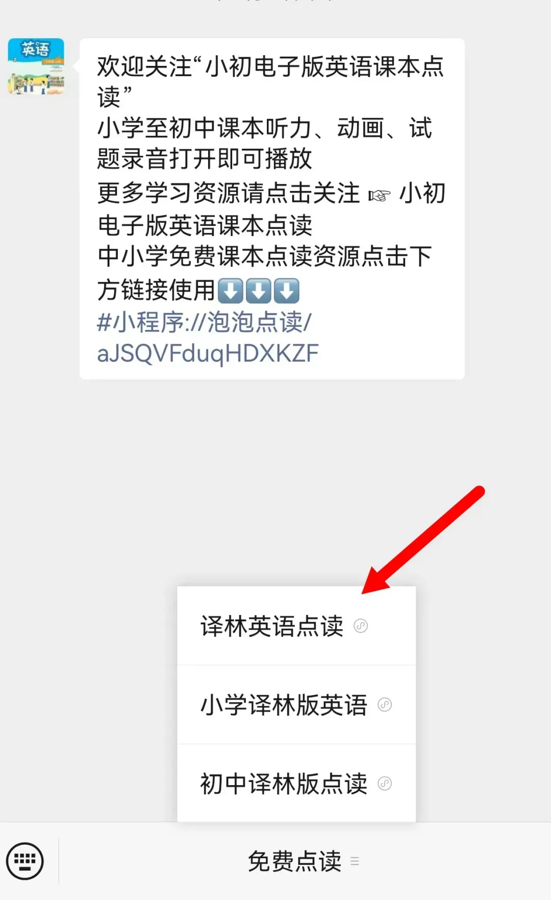 关注领取英语教材电子课本步骤1:点击关注下方公众号步骤2:消息框内点击关键词“英语点读”获取免费点读工具2026新教材英语译林版七年级下册电子课本+课文音频+单词表【完整高清版】声明:本公众号部分转载的文章、图文、视频来自网络,其版权和文责属原作者所有,若来源标注错误或侵犯到您的权益,烦请告知 ,我们将立即删除。