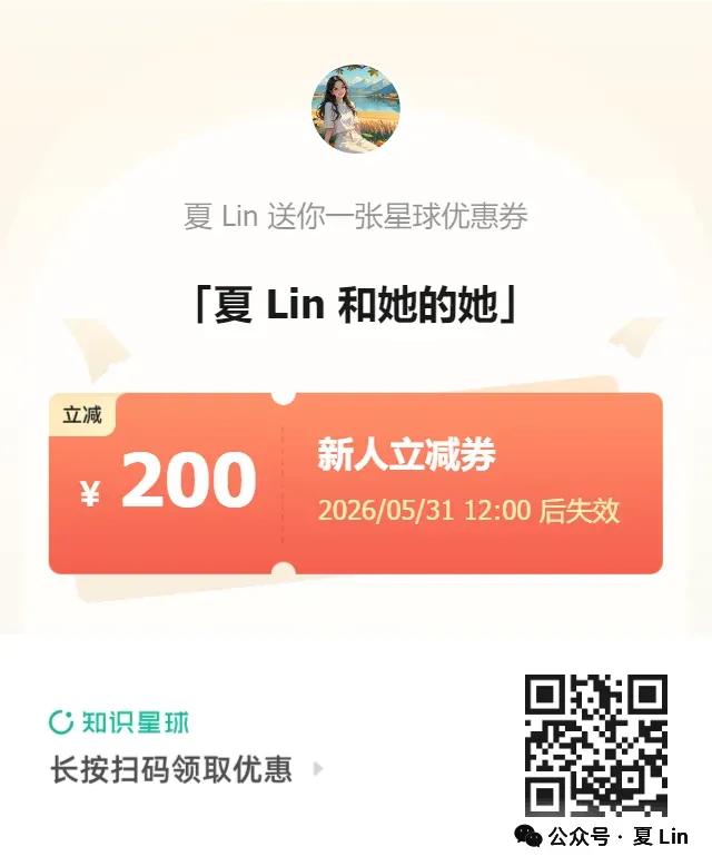 多读者每天都会给我留言一些具体人生困境,有择偶、有婚恋、有搞钱、育儿等各个维度的迷思,希望我能作出解答,于是我开了一个知识星球,名字叫做【夏Lin和她的她】,汇聚一批同频之人,在这里一起共同成长、进步。