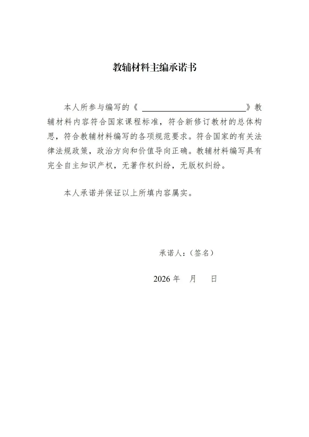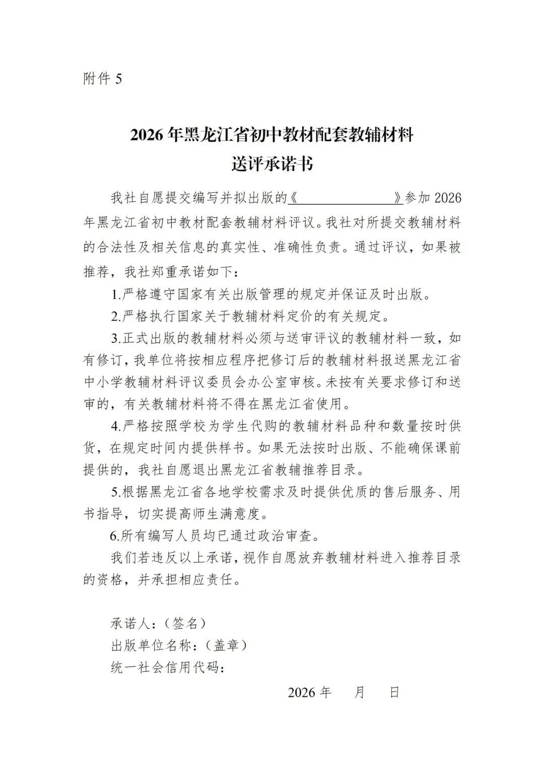 2026年黑龙江省初中教材配套教辅材料送评承诺书(样例)