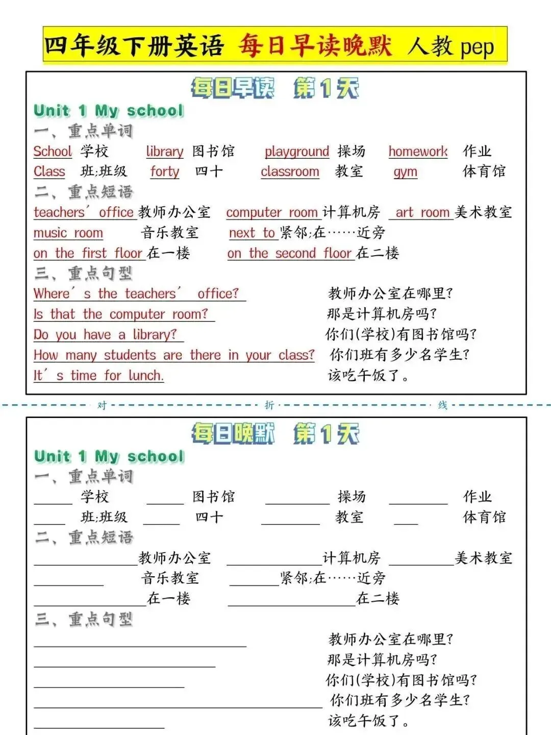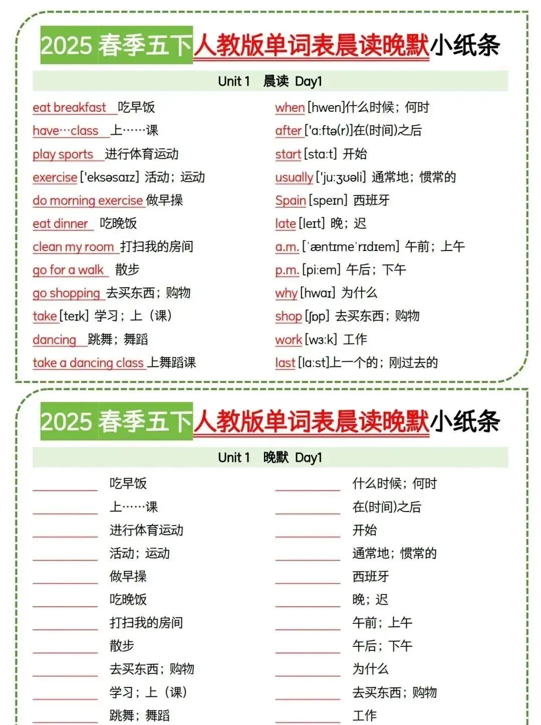 E121-人教PEP版小学英语3-6年级下册《晨读晚默小纸条》