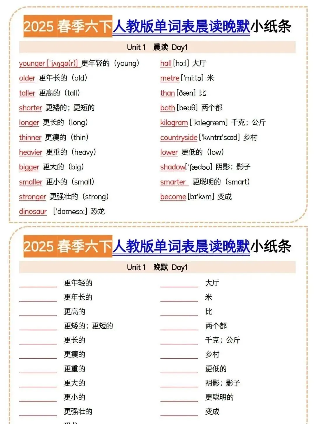 >【英文教材】人教PEP版小学英语3-6年级下册《晨读晚默小纸条》