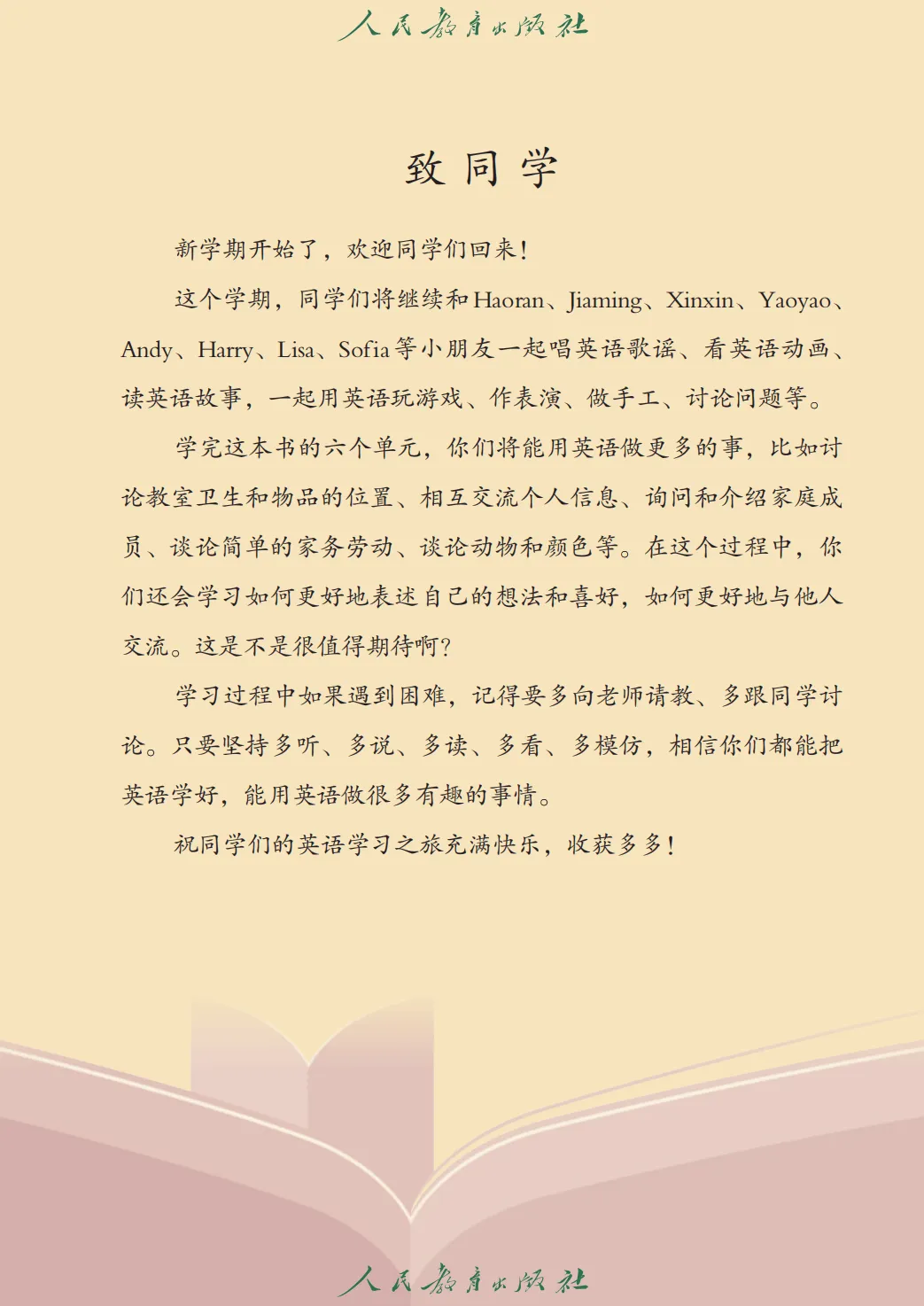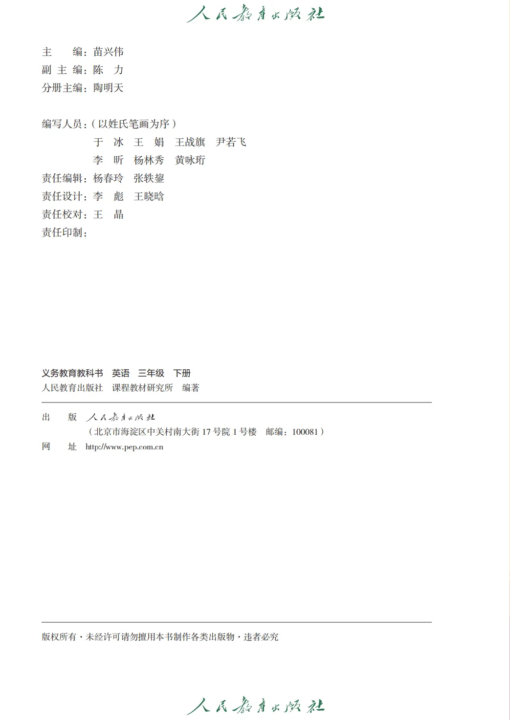 今天分享的是2026新人教版PEP小学英语三年级下册电子课本,希望对大家学习有所帮助