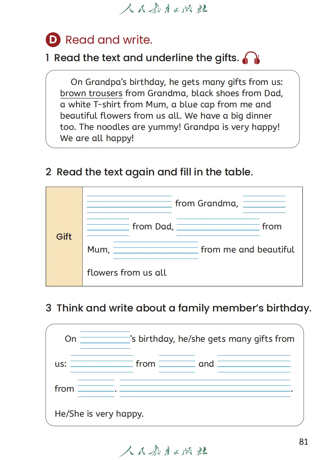 【英文教材】人教PEP版小学英语3-6年级下册《晨读晚默小纸条》