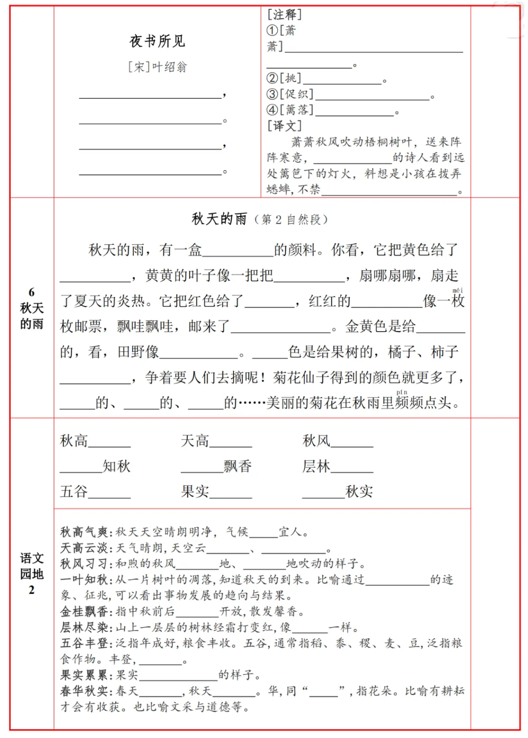 小学课本背诵内容+默写检查