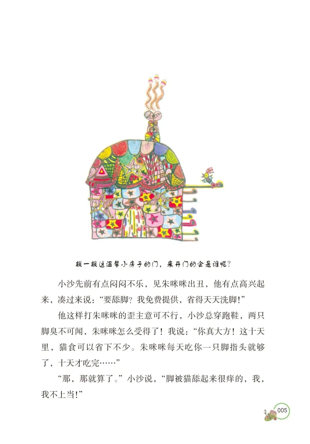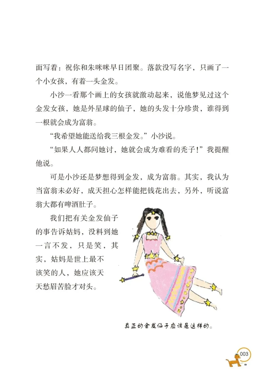 书中的朱多星是个“调皮鬼”。他会把音乐放得震天响,美其名曰帮小猫发掘“迪斯科天赋”;他会拉着表弟在姑父的席梦思床上蹦跳,直到床垫塌陷,让姑父“像一只窝在地里的土豆”;他更会自信满满地充当“剃头大师”,结果让表弟照镜子时“大叫一声,像见了鬼一样”。