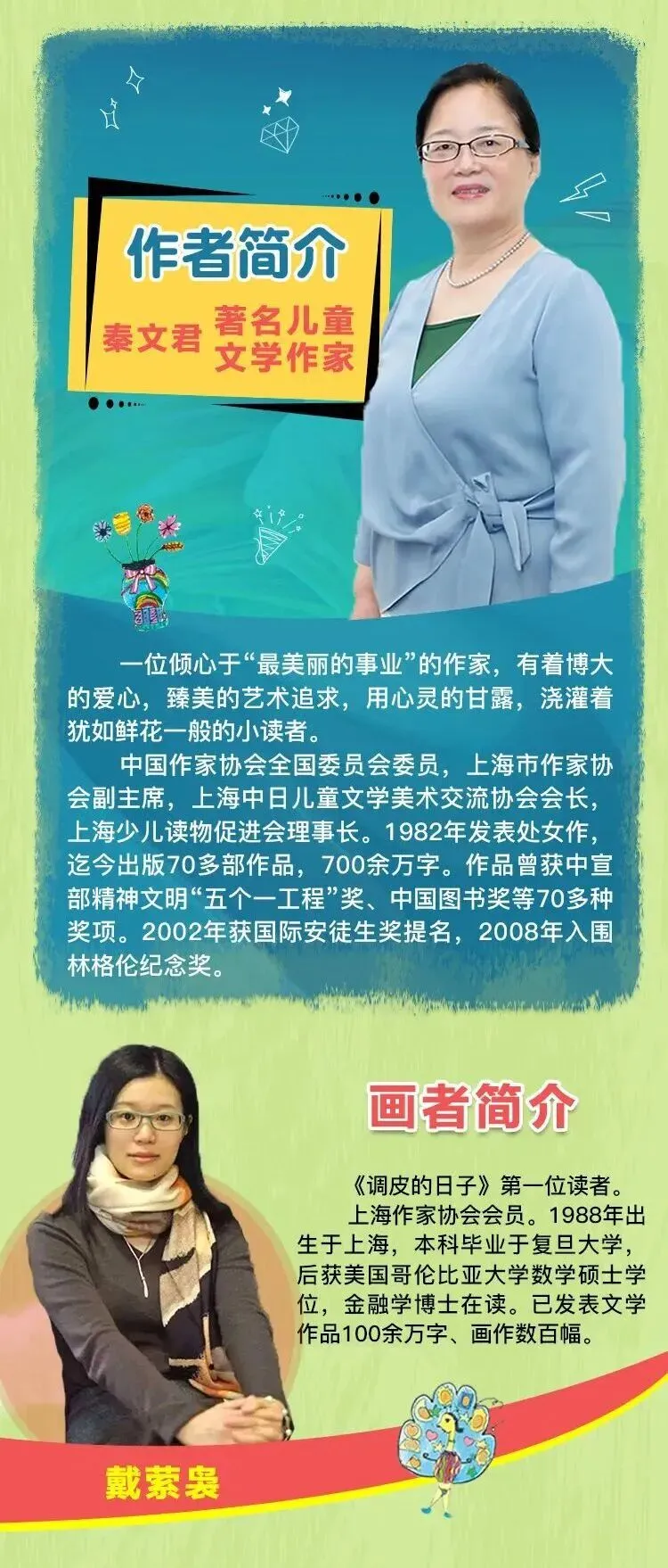 秦文君女士创作儿童文学四十余年,获奖七十余项。她对孩子了解颇深。她说:“有时候给孩子讲许多大道理不一定有用,而一个故事就能涵盖全世界的奥秘。”她笔下的调皮不是胡闹,而是孩子认识世界、表达情感的方式。