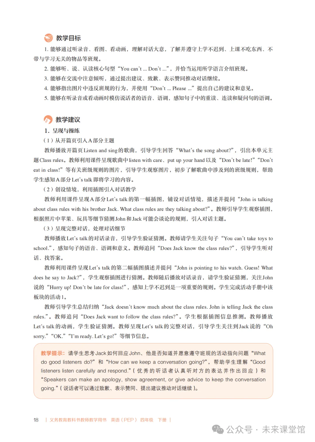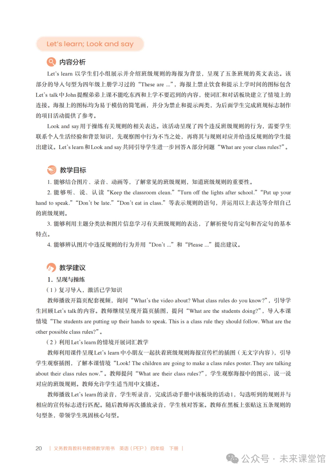 PEP人教版新教材小学英语四下教学设计参考