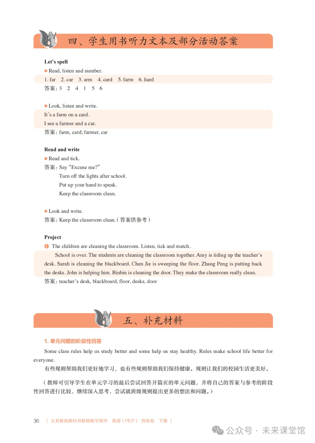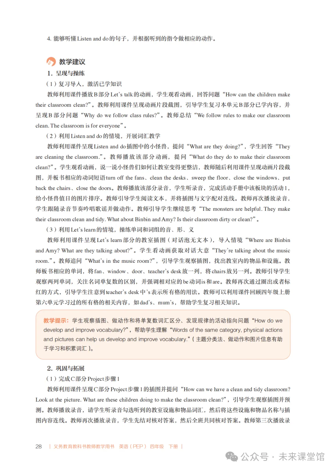 >PEP人教版新教材小学英语四下教学设计参考