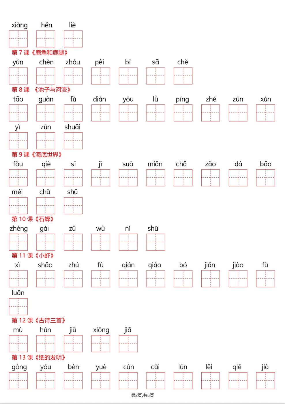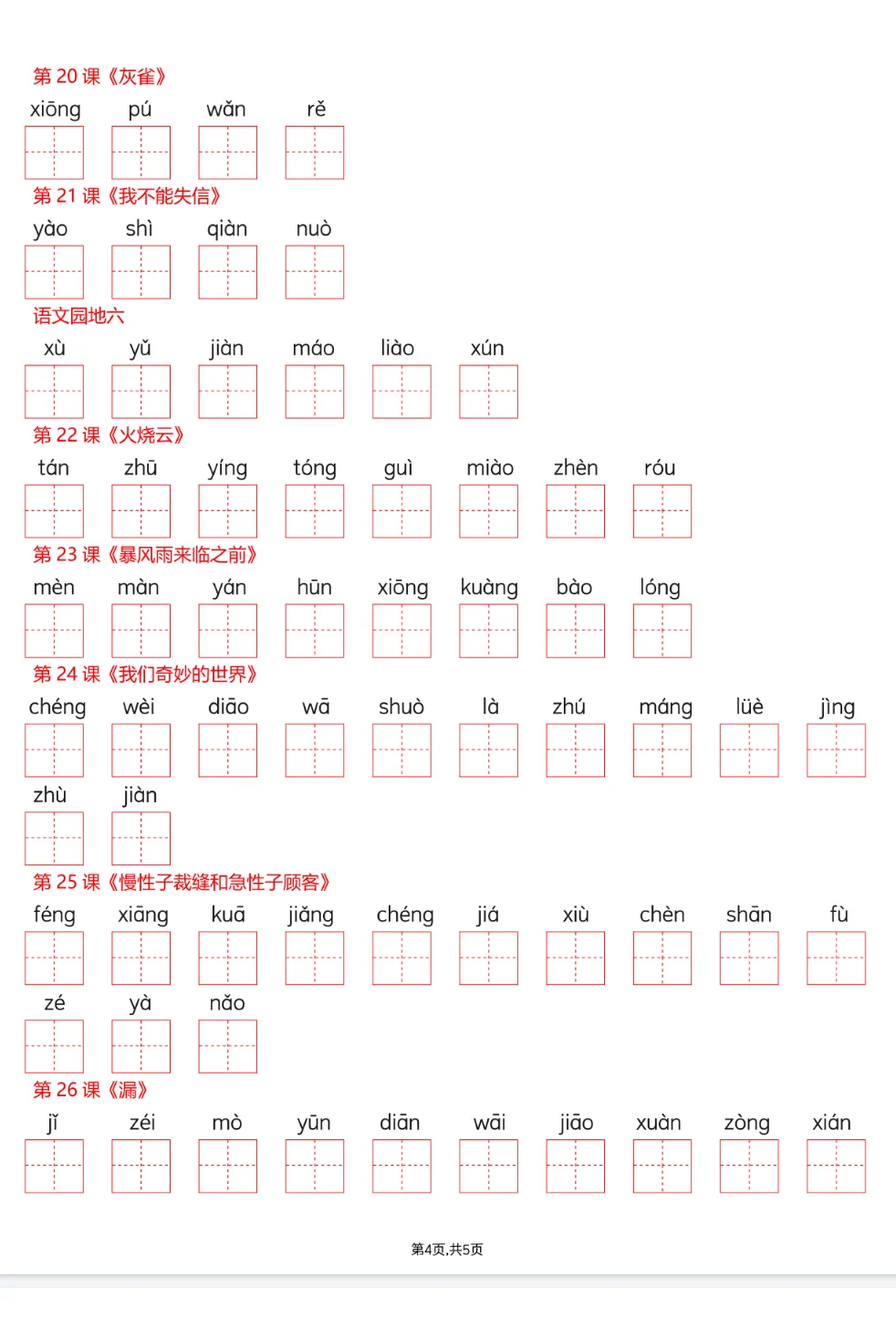 课后识字表+写字表+词语表注音