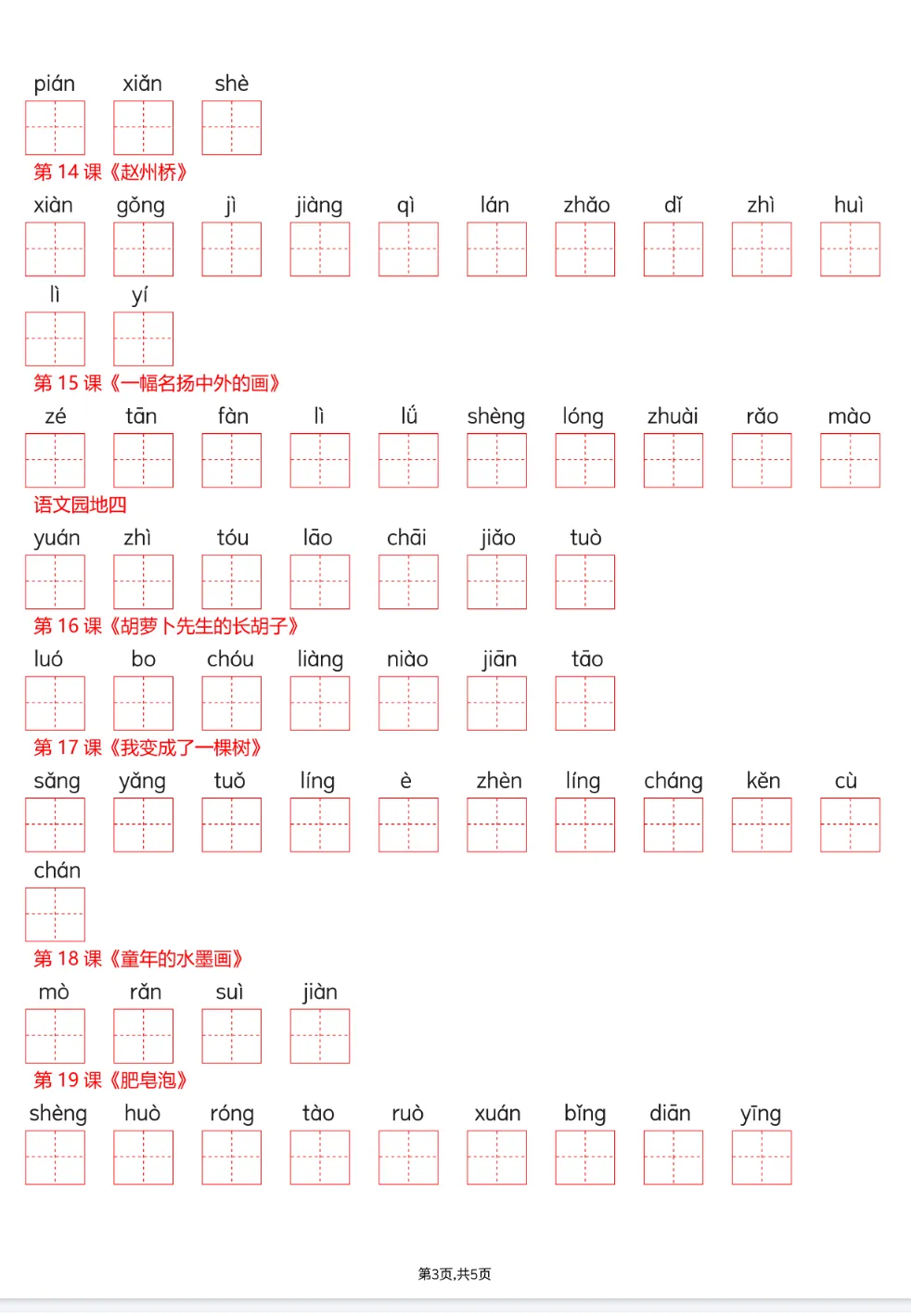 >2026年春 人教版 新教材小学三年级语文下册课后识字表+写字表+词语表注音 PDF电子版,可打印!