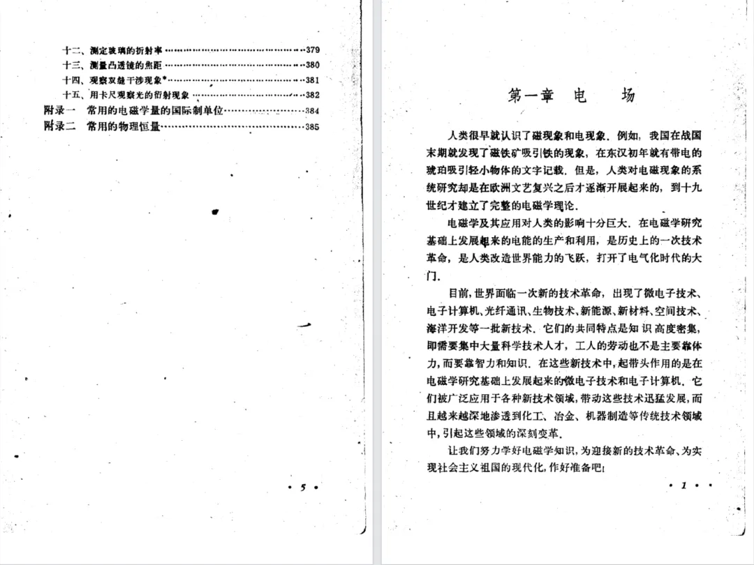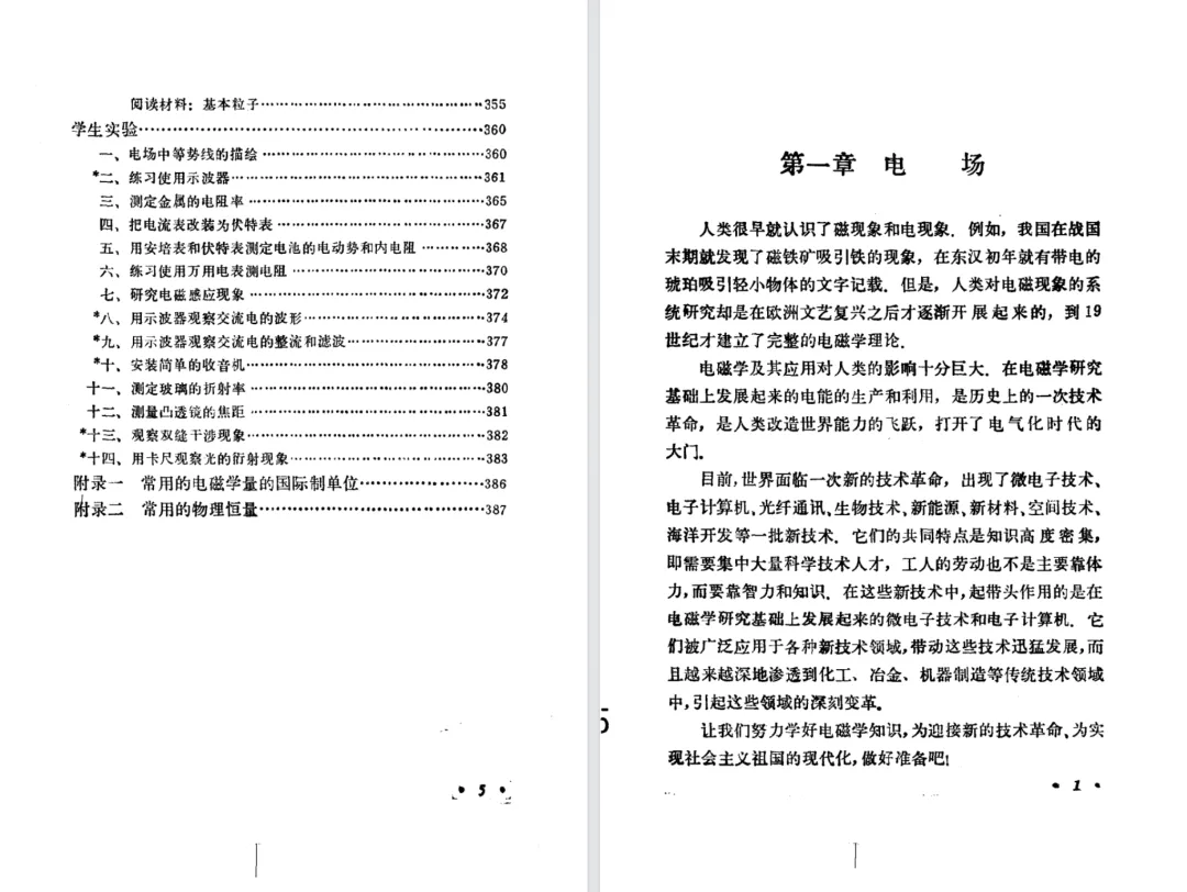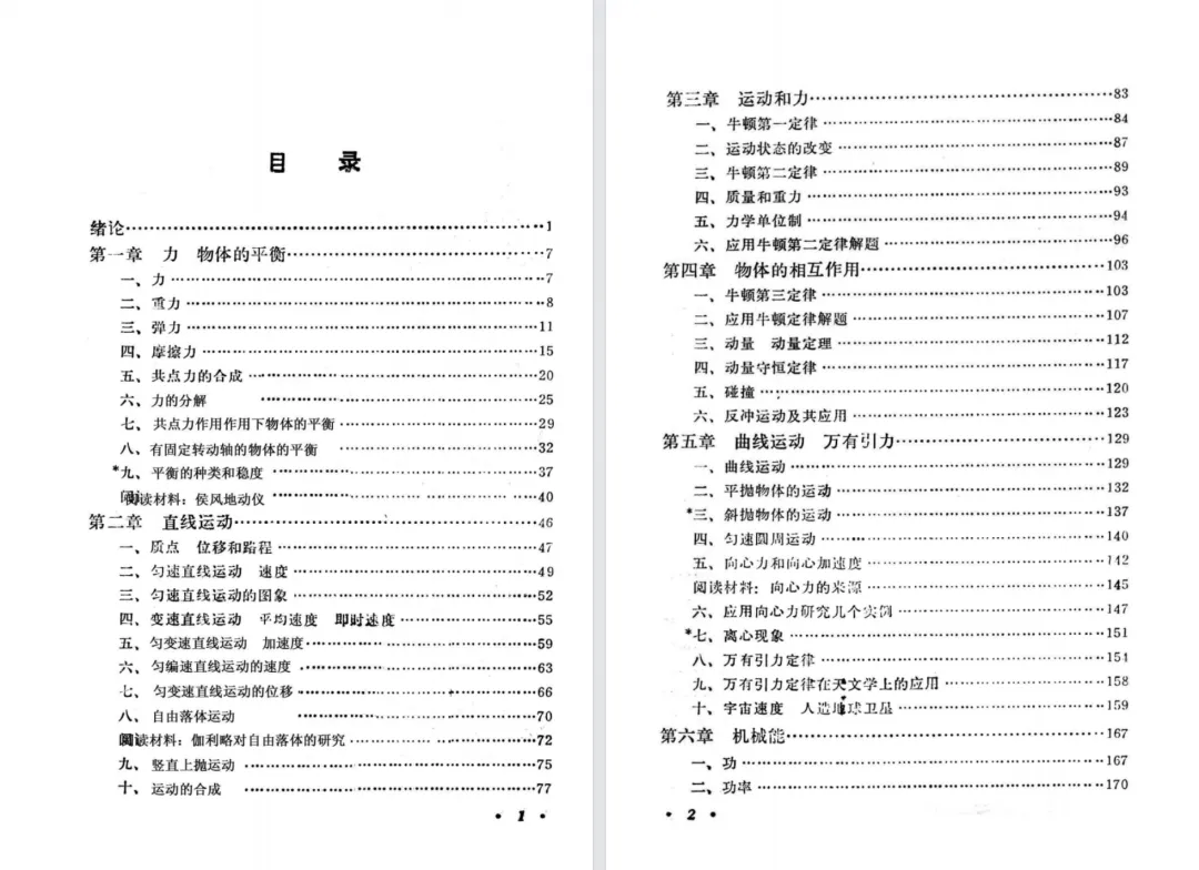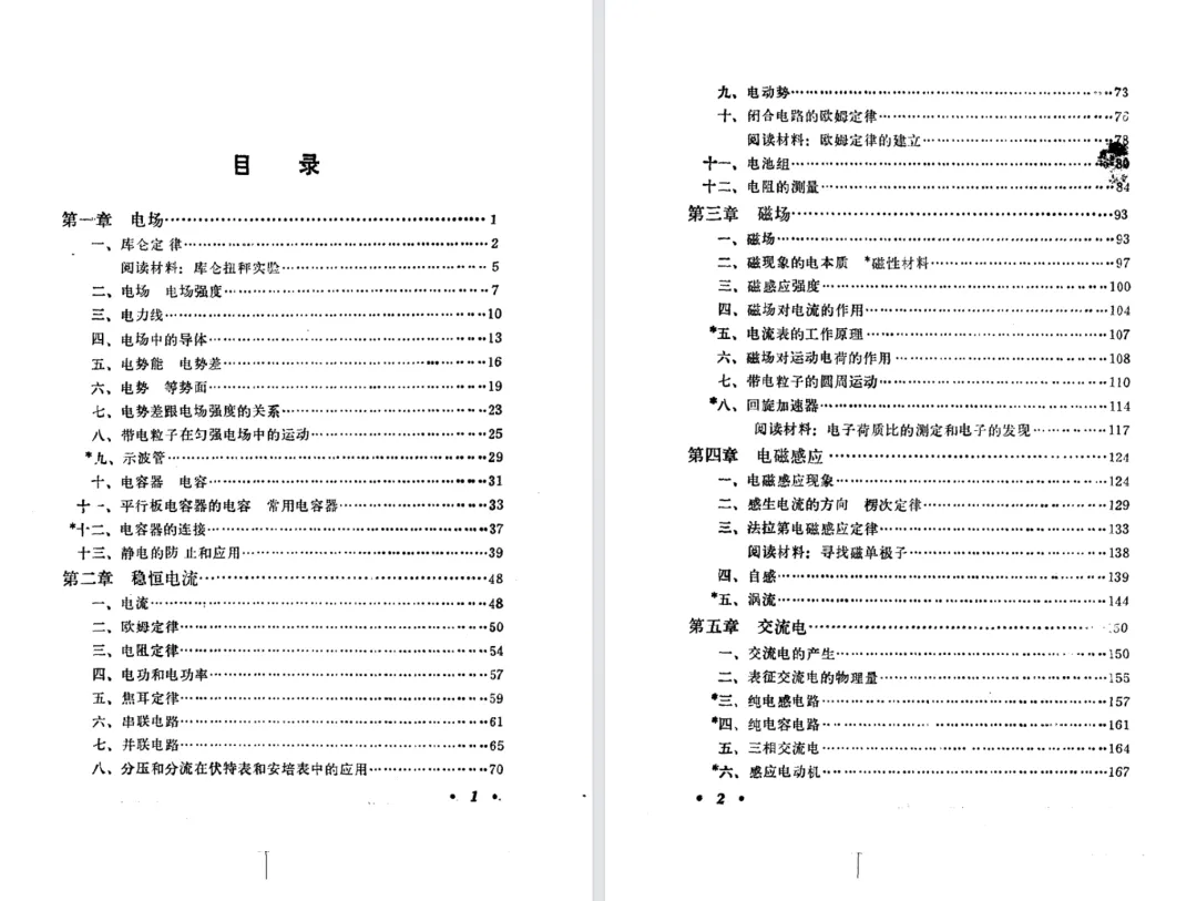 按《物理教材建设史》的说法,第二版仅增加了一节,删除了一个学生实验,但是,第二版做了重新排版,导致两个版本的页数有较大的变化。上册的国际单位制的附录,第一版在第334页,第二版在第344页。接下来先对比分析教材目录,后对比两版教材排版的差异。
