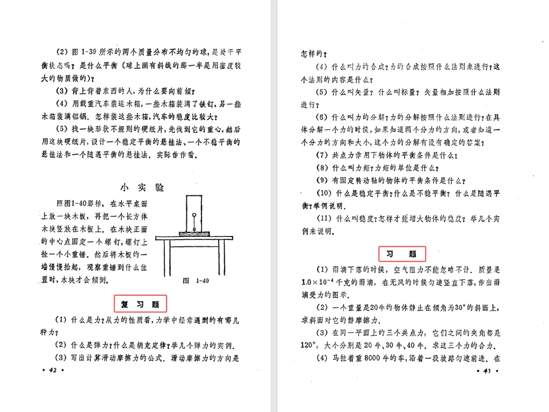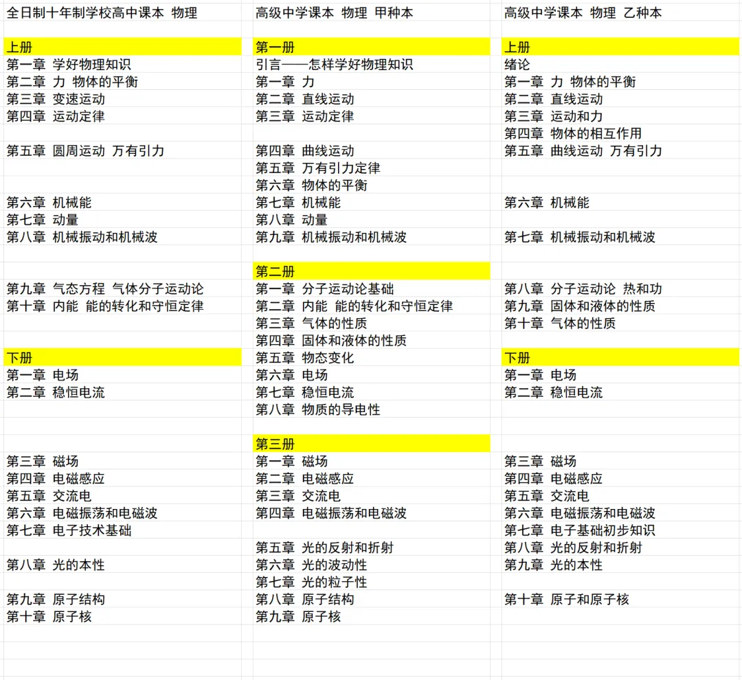 前面介绍全日制十年制高中物理(旧教材)和高中物理甲种本的文章没有系统介绍他们的栏目设置,本文借展示乙种本栏目设置的契机,对三个版本教材的栏目设置做一个对比。