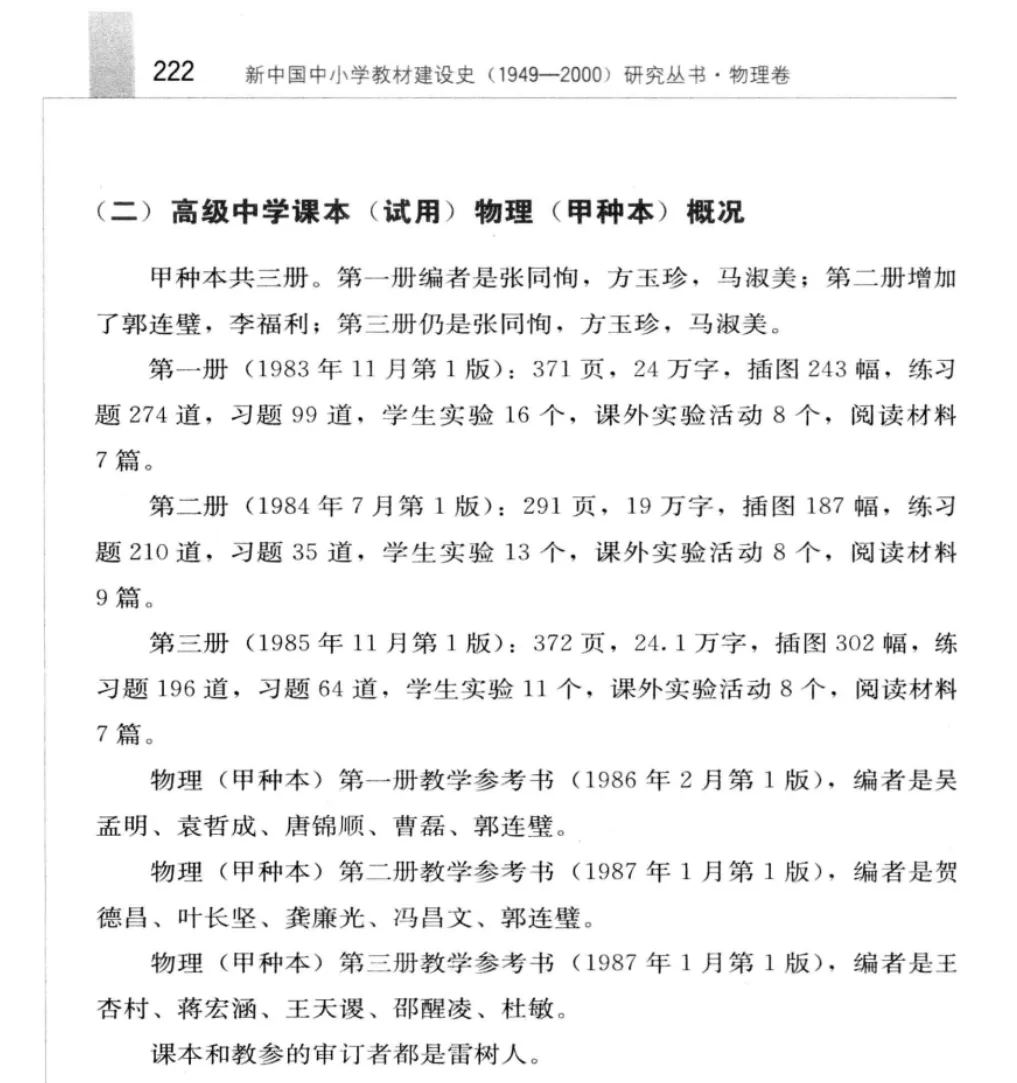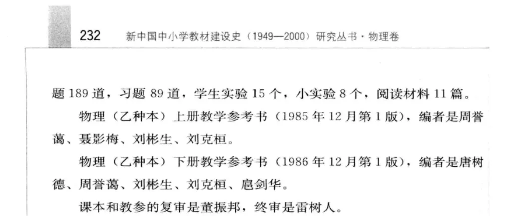 人民教育出版社出版的《新中国中小学教材建设史 1949-2000 研究丛书 物理卷》(简称《物理教材建设史》