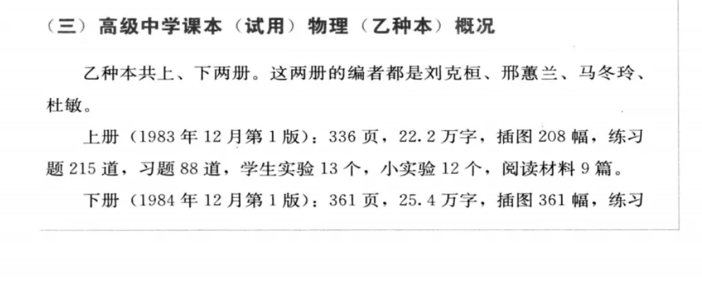本文对八十年代人民教育出版社出版的 高级中学课本 物理 乙种本 进行总体介绍。