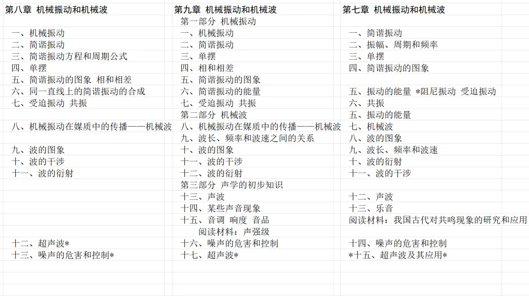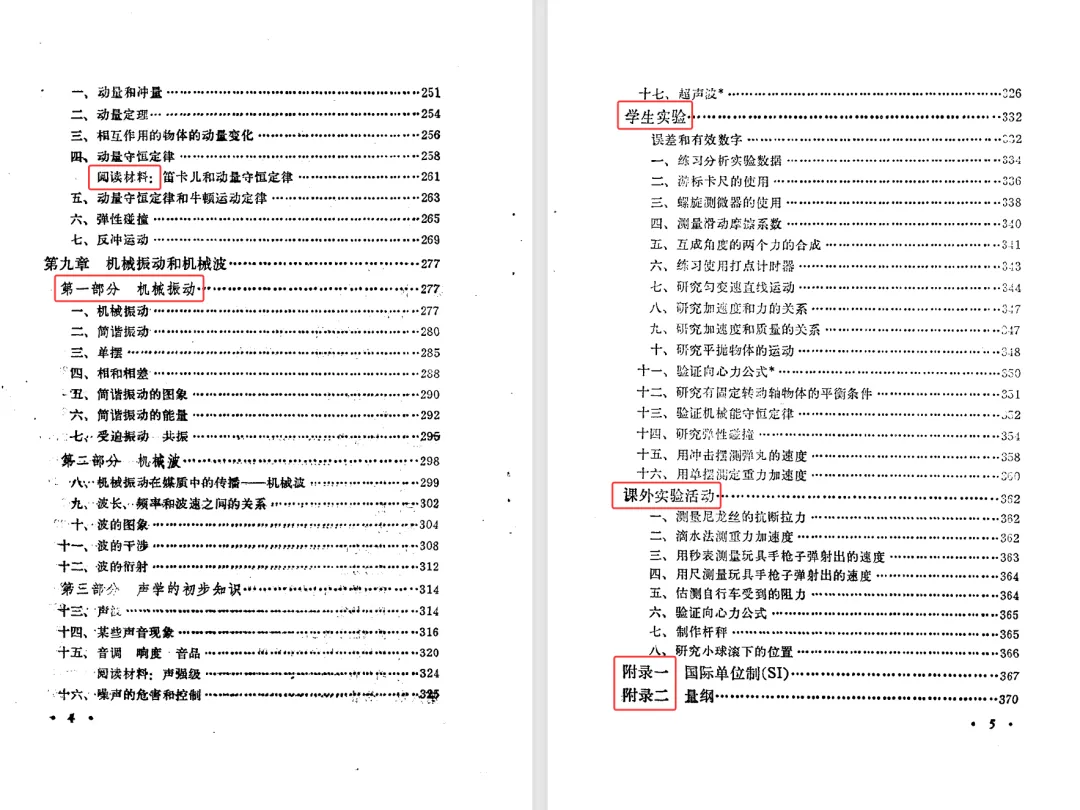 接下来看机械振动和机械波一章。乙种本的内容大体上与甲种本相同。乙种本第十三节后有一个甲种本没有的阅读材料。