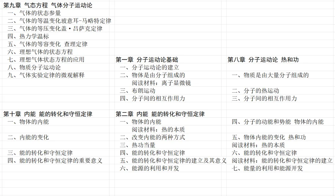 ”更好一些。旧教材和甲种本都有一节叫物体的内能,乙种本的小节标题还体现了分子的动能和势能,其实三个版本的教材中,这一节的内容是相同的。乙种本将能的转化和守恒定律的建立改为阅读材料,而不是小节。