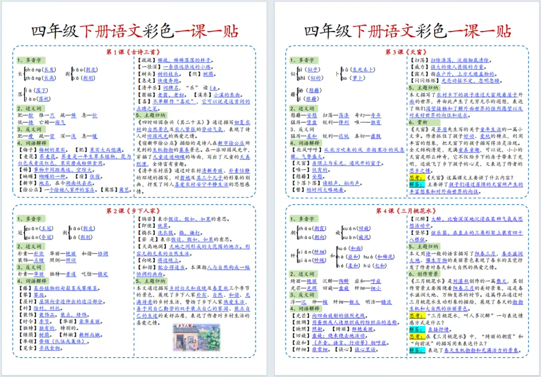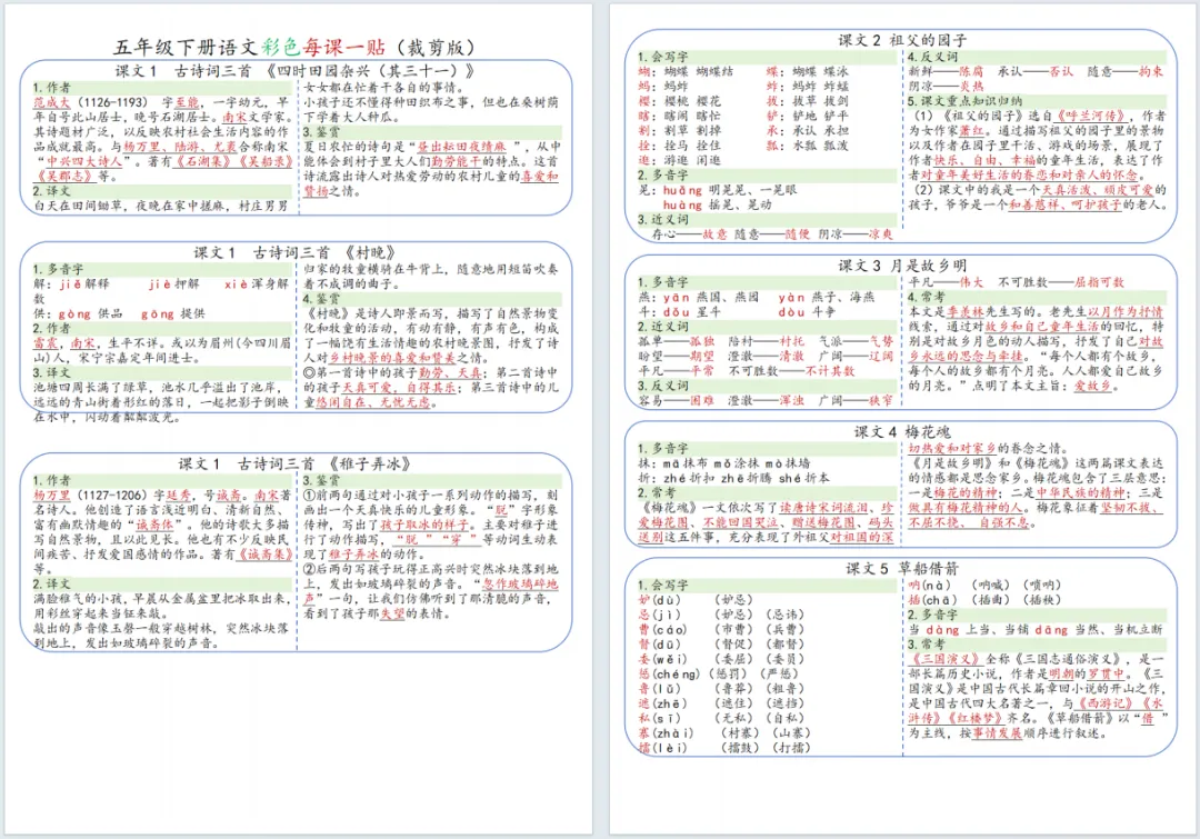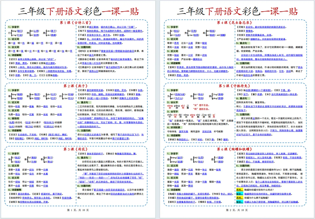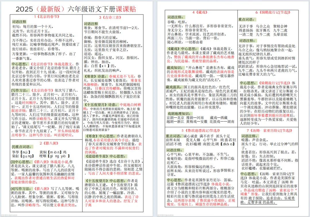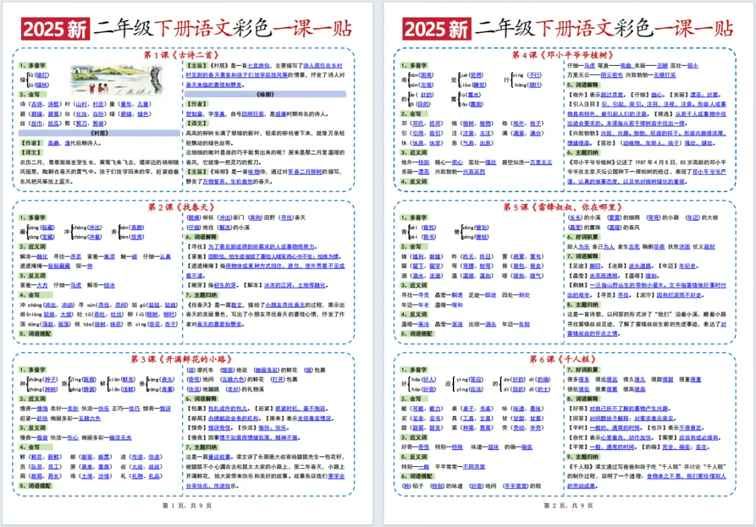 2025年爆火的1-6年级下册语文彩色课课贴,一课一贴,匹配最新教材!赶紧打印出来,帮助孩子学习!
