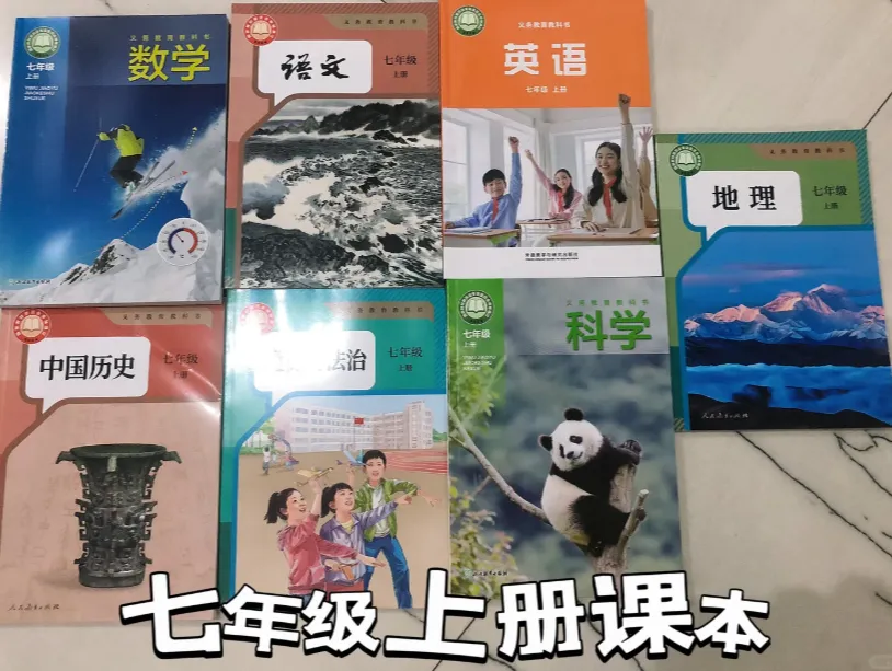初中的教材,语数英科版本上有大变化,变化最大的是历史与社会,从原来的两本现在拆分成了三本——地理、历史和道德与法治。分得更细,说明学的内容也更细致了,难度较之前也有所提升。