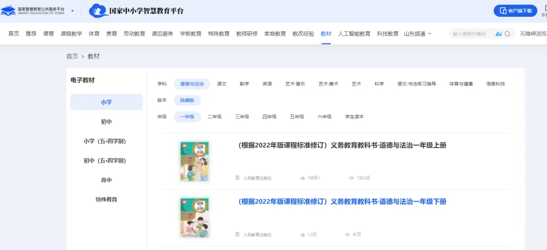 2.注册登录国家中小学智慧教育平台,找到“教材”专栏,含小学、初中、高中各版本的电子课本资源,直达链接见图片下方,也已附在【电子课本】资源包中。