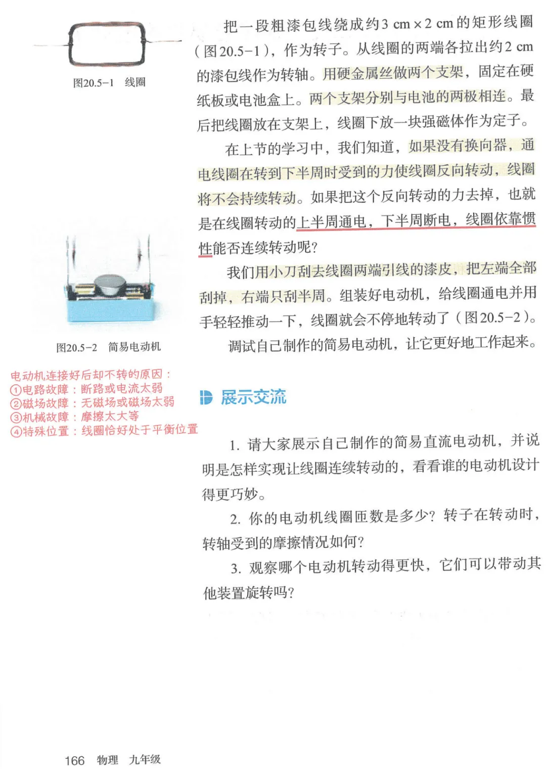 >初中物理新教材 第二十章 电与磁 第5节《跨学科实践:制作简易直流电动机》批注(2024人教版)