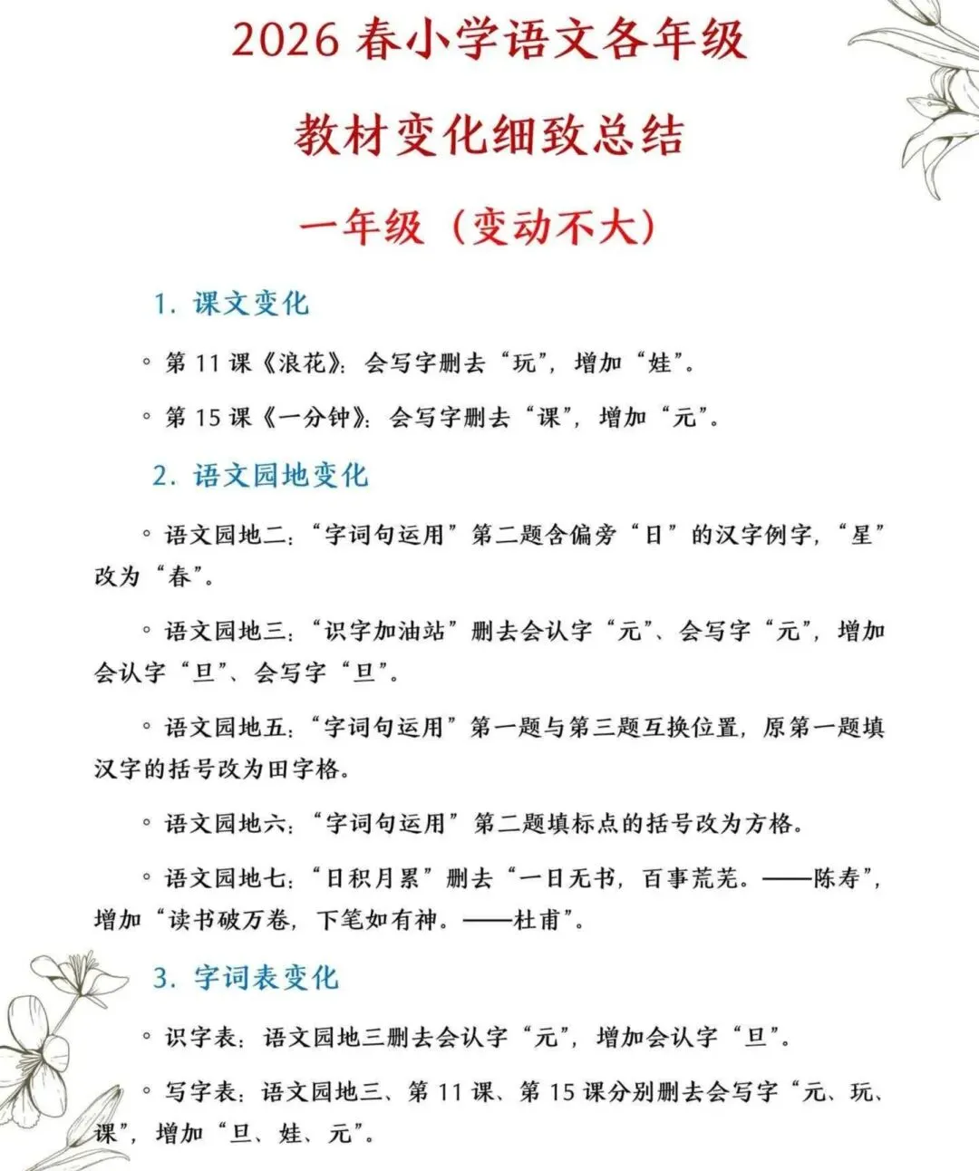 1-2年级:课文增删+栏目大调整,口语交际移进园地
